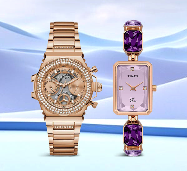 For couples who stay together, nothing elevates their duo like matching timepieces that exude style and personality. Watches aren’t just about keeping time; they’re a statement, a shared bond, and an accessory that whispers elegance with every tick. Enter the world of timeless romance with two captivating contenders: Timex Fria and Guess His & Hers.