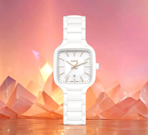 • A Timeless White Touch: If she loves the allure of white, Rado’s Women White Chronograph Ceramic Watch is a beautiful option. With its sleek ceramic finish and sophisticated chronograph function, this timepiece exudes luxury. It’s perfect for a bride who loves clean lines and timeless style, adding an elegant touch to her bridal attire while being versatile enough for everyday wear.