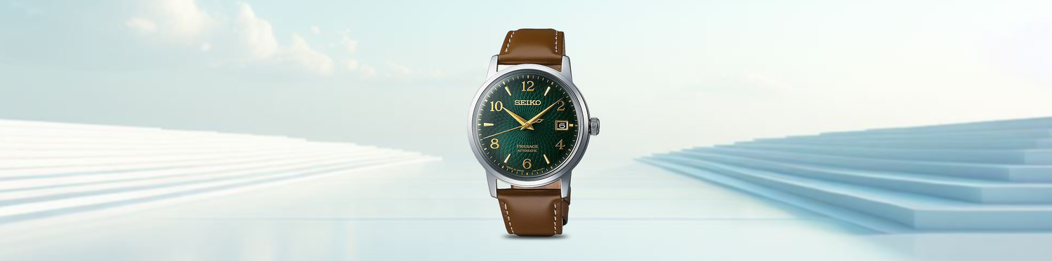 Leather (as on the Presage Green) reads dressy and comfortable for long dinners; stainless steel (as on the Seiko 5 Sports or Tissot PRS 516 steel) is versatile, resilient, and transitions cleanly from meetings to weekends.