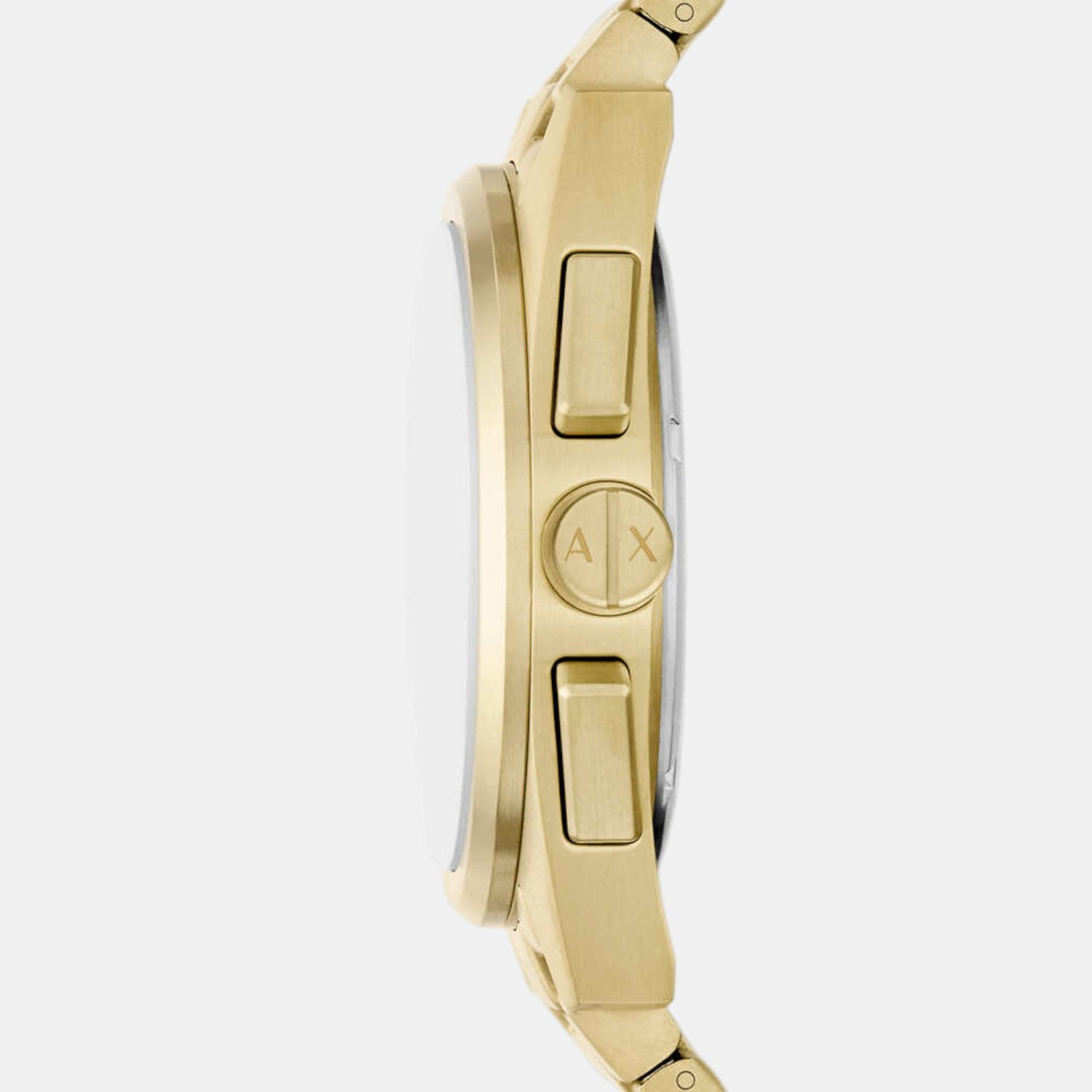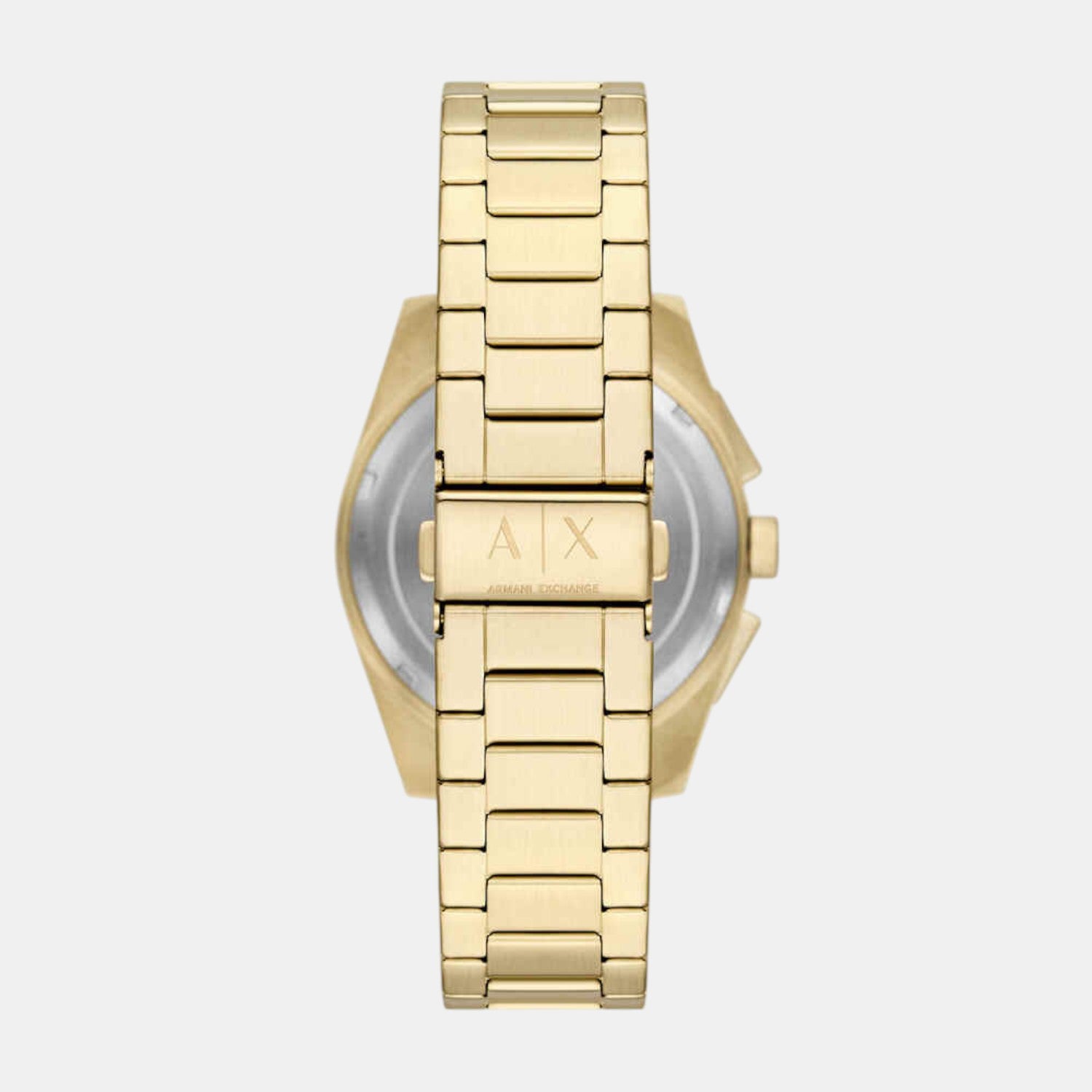 Armani Exchange's 42mm chronograph watch features a striking red matte dial that captures attention. The gold-tone stainless steel bracelet adds a touch of luxury, while the durable mineral crystal protects the dial. Powered by precise quartz chronograph movement, this watch combines style and functionality, making it a standout accessory for any occasion.