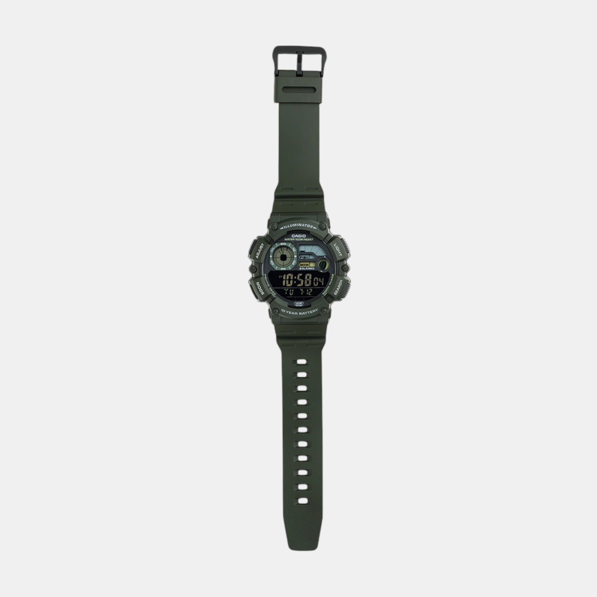 Crafted by Casio, this elegant timepiece from the Youth collection exemplifies refined design. It is tailored for Men, featuring a Round case shape for timeless appeal. The Resin strap adds strength and sophistication. With a dial size of 45 mm, it balances subtlety and presence on the wrist. The 16.8 mm case thickness ensures a lightweight feel. A Dark Grey dial and Dark Grey strap create a distinct contrast. The Tang Buckle buckle secures comfort. Driven by Quartz movement, it delivers precision through Digital display. Protected by Mineral Glass and Resin dial material.