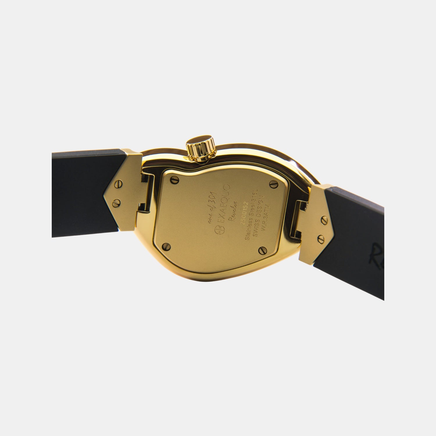 Crafted by Exaequo, this elegant timepiece from the Revolve collection exemplifies refined design. It is tailored for Unisex, featuring a Kidney Shaped case shape for timeless appeal. The Silicone strap adds strength and sophistication. With a dial size of 33 x 51.2 mm, it balances subtlety and presence on the wrist. The strap width of 20 mm complements its sleek profile. The 10 mm case thickness ensures a lightweight feel. A White dial and Black strap create a distinct contrast. The Folding Clasp buckle secures comfort. Driven by Quartz movement, it delivers precision through Analog display. Protected by Mineral Glass and Stainless Steel dial material. It offers 3 ATM water resistance.