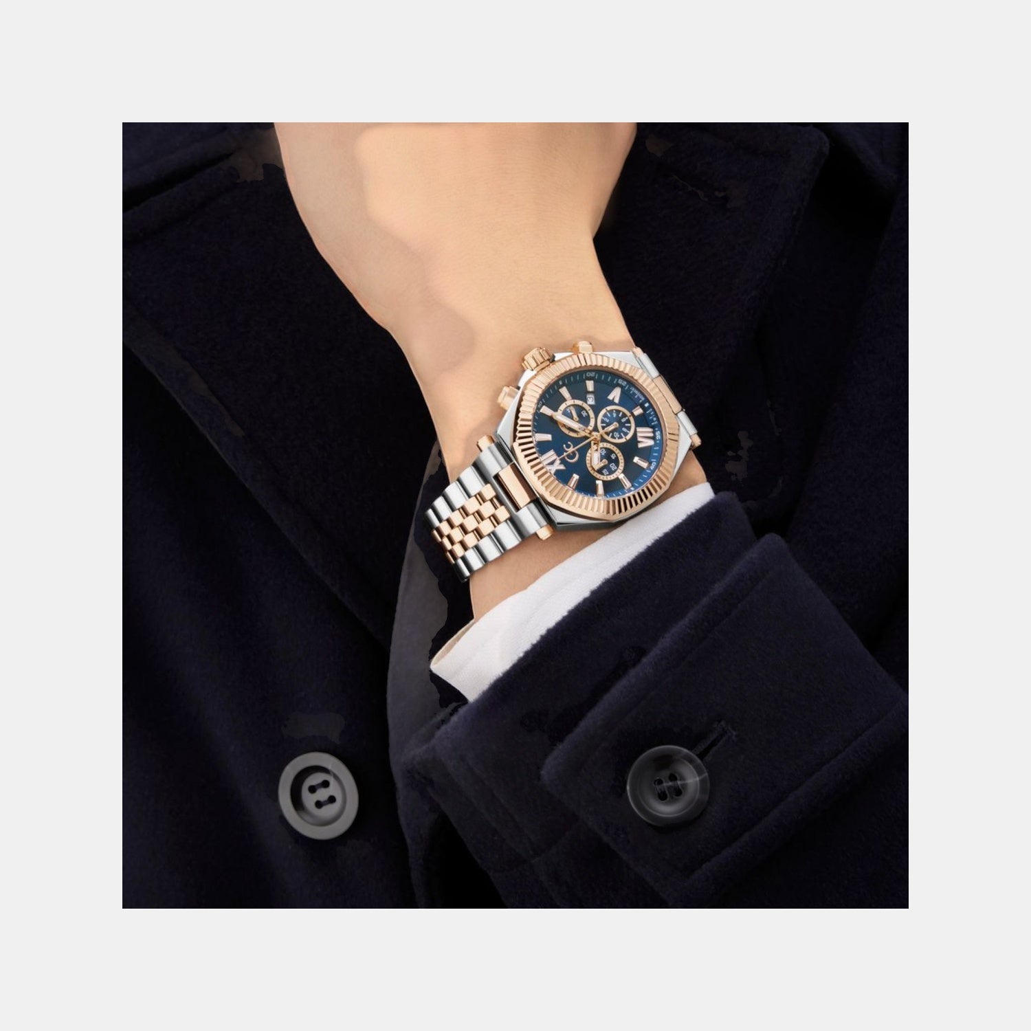 The Gc Atlas Chrono strikes a commanding presence with its sculptural blend of polished silver and rose gold plating across a bold 44mm case and integrated bracelet. Its brushed and polished finishes play with light and contrast, while the deep blue textured dial adds a touch of daring sophistication.