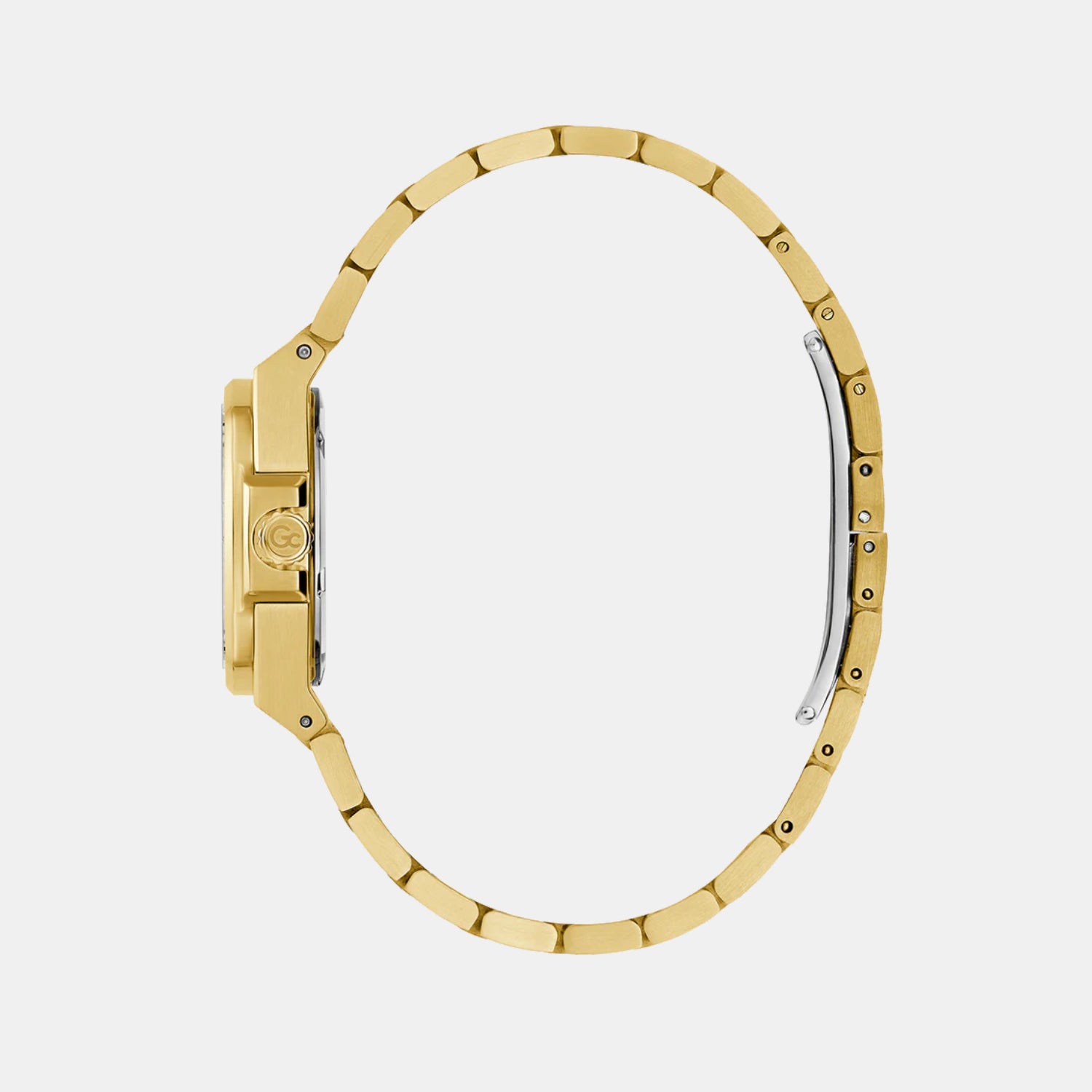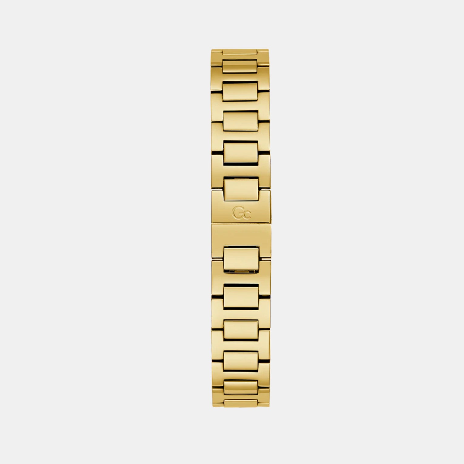 The Gc Coussin Shape Mini, with its 30mm cushion case, crystals on the top ring and H-link bracelet is an alluring timepiece. This yellow gold PVD version has beautiful eco-friendly white mother-of-pearl dial.