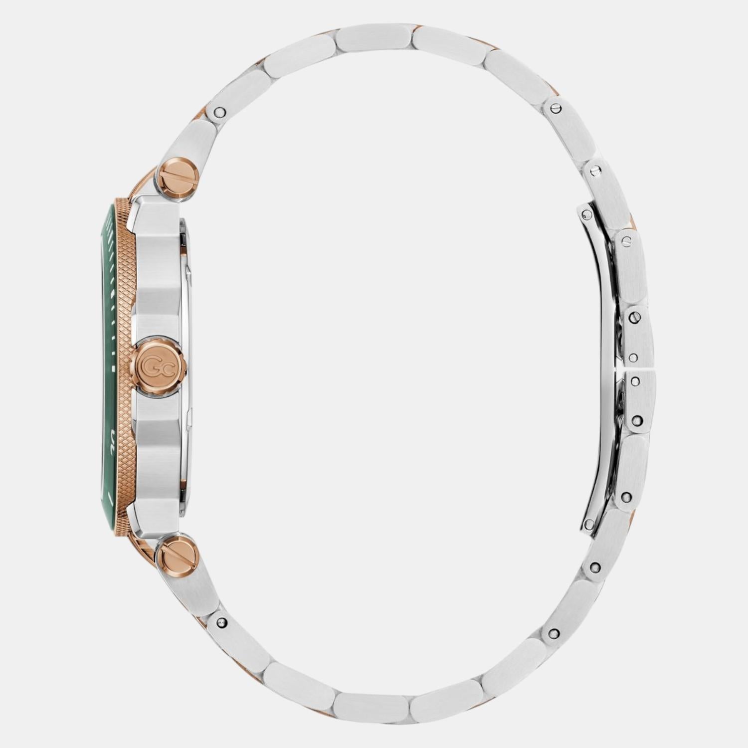 Crafted by GC, this elegant timepiece from the One Sport collection exemplifies refined design. It is tailored for Women, featuring a Round case shape for timeless appeal. The Stainless Steel strap adds strength and sophistication. With a dial size of 36 mm, it balances subtlety and presence on the wrist. A Green dial and Two Tone strap create a distinct contrast. The Foldover Clasp buckle secures comfort. Driven by Quartz movement, it delivers precision through Analog display. Protected by Sapphire Glass and Stainless Steel dial material. It offers 10 ATM water resistance.