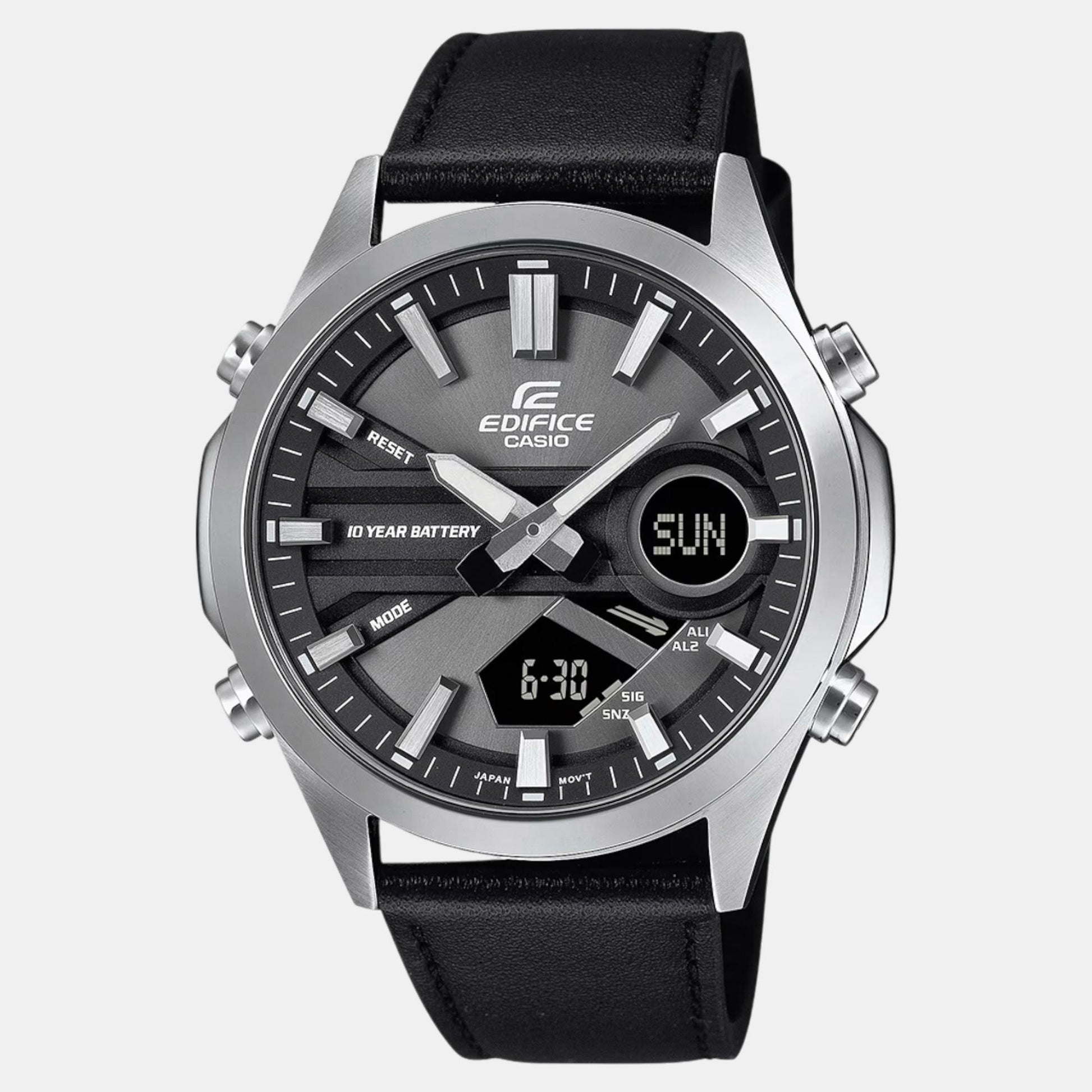 Edifice Men Quartz Black Dial Analog-Digital Leather Watch ED627