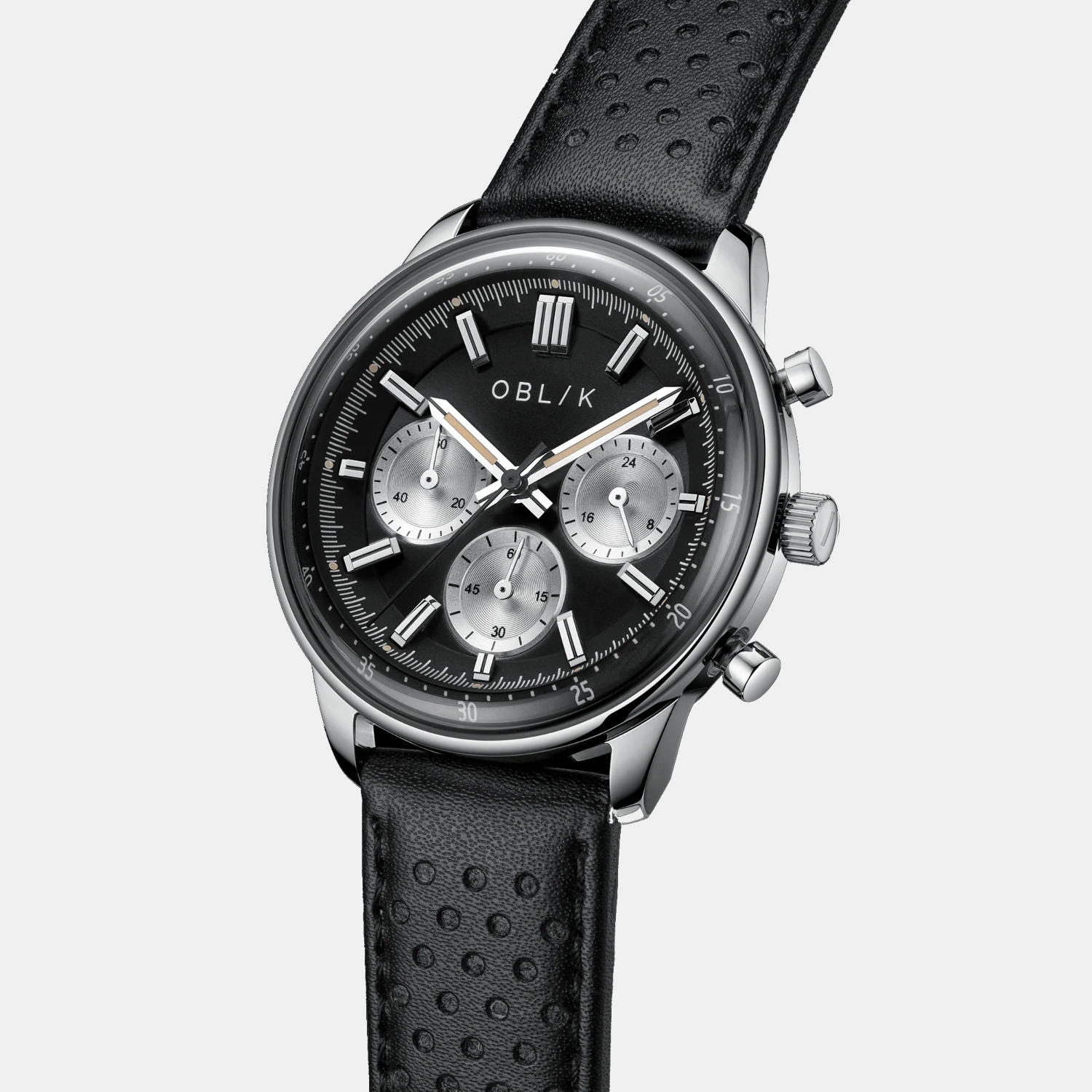 Crafted by Oblik, this elegant timepiece exemplifies refined design. It is tailored for Men, featuring a Round case shape for timeless appeal. The Leather strap adds strength and sophistication. With a dial size of 40 mm, it balances subtlety and presence on the wrist. The strap width of 20 mm complements its sleek profile. The 8.5 mm case thickness ensures a lightweight feel. A Two Tone dial and Black strap create a distinct contrast. The Pin Buckle buckle secures comfort. Driven by Quartz movement, it delivers precision through Chronograph display. Protected by Mineral Glass and Stainless Steel dial material. It offers 5 ATM water resistance.