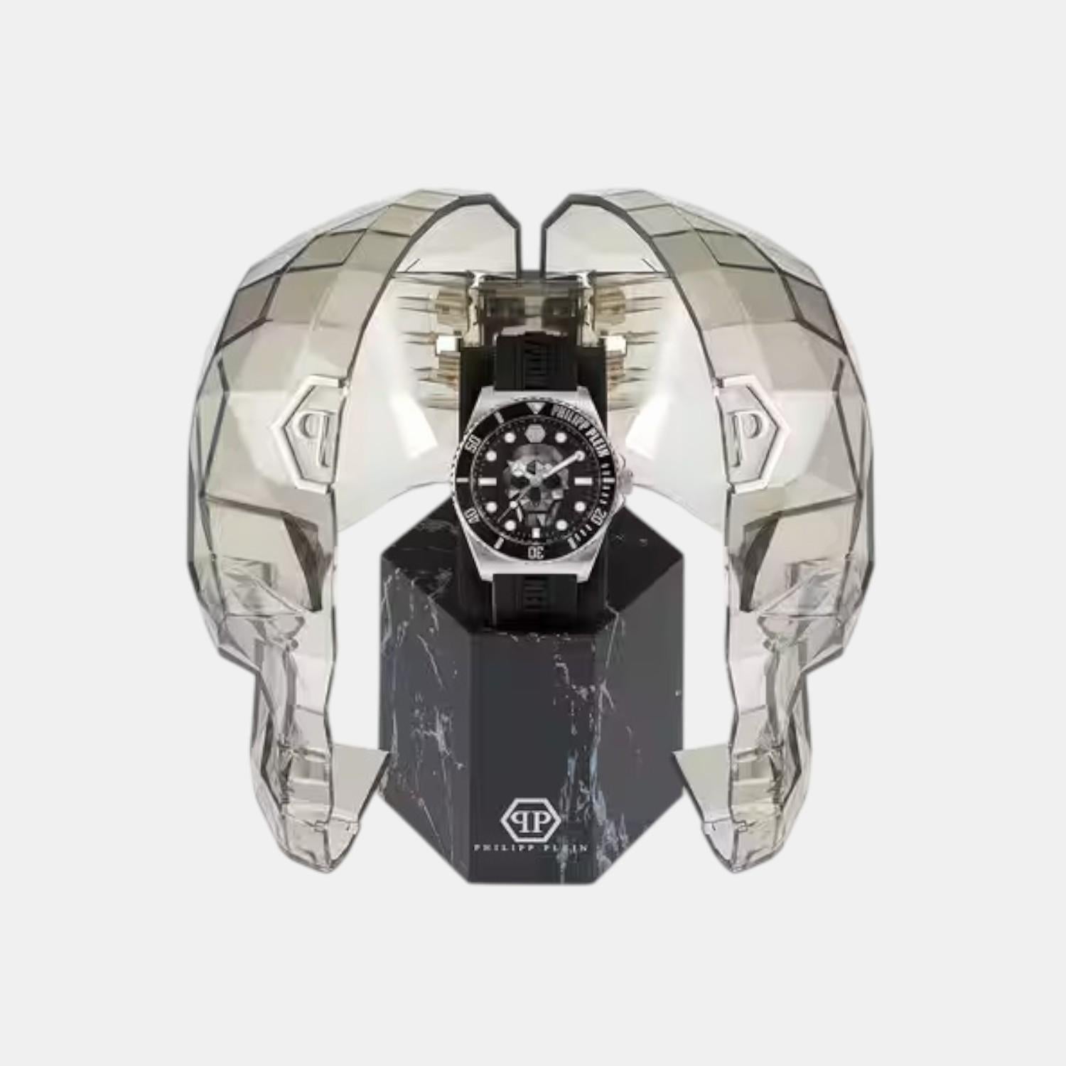 Crafted by Philipp Plein, this elegant timepiece exemplifies refined design. It is tailored for Men, featuring a Round case shape for timeless appeal. The Silicone strap adds strength and sophistication. With a dial size of 44 mm, it balances subtlety and presence on the wrist. The 11.50 mm case thickness ensures a lightweight feel. A Black dial and Black strap create a distinct contrast. The Tongue Buckle buckle secures comfort. Driven by Quartz movement, it delivers precision through Analog display. Protected by Mineral Glass and Brass dial material. It offers 10 ATM water resistance.