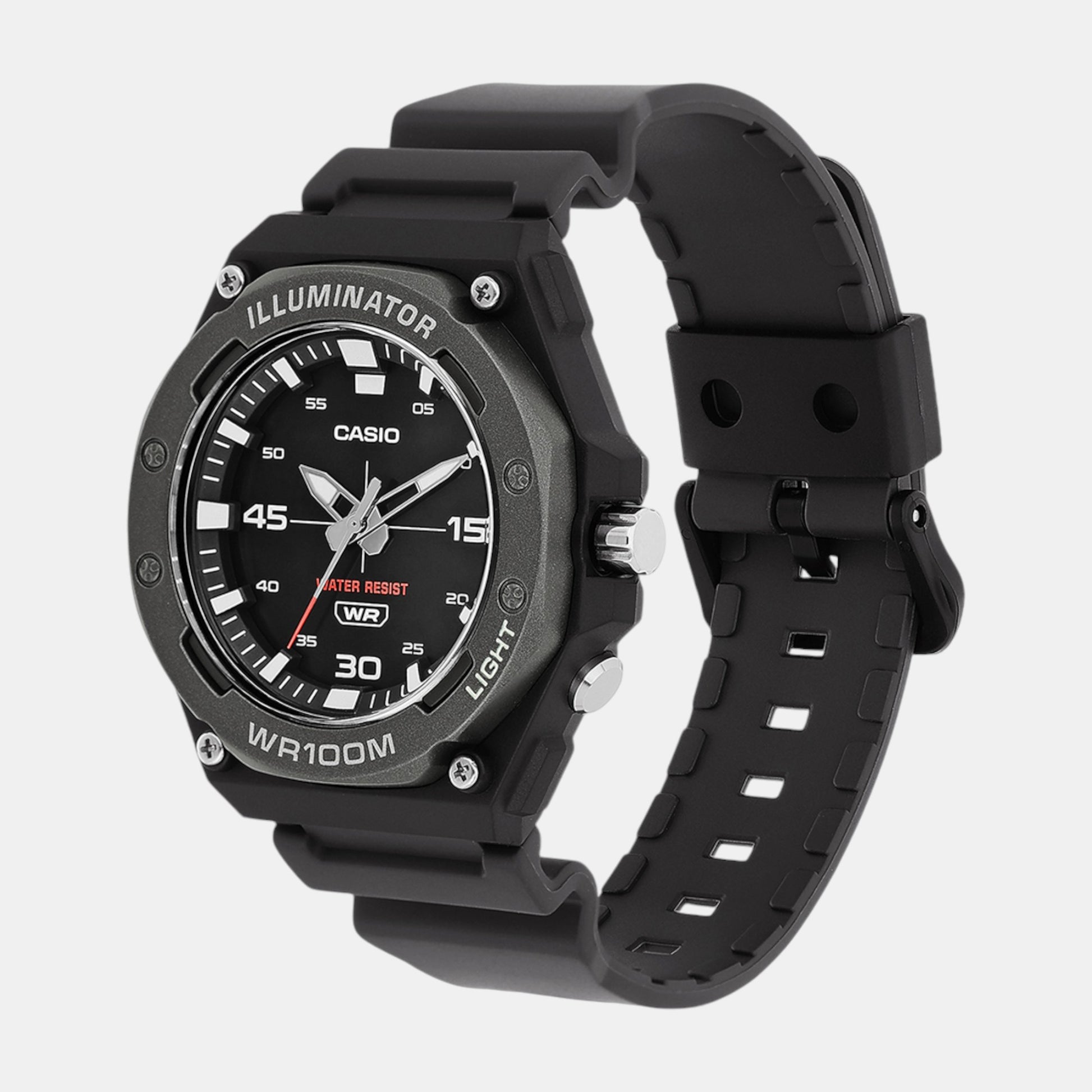 Crafted by Casio, this elegant timepiece from the Youth collection exemplifies refined design. It is tailored for Men, featuring a Round case shape for timeless appeal. The Resin strap adds strength and sophistication. With a dial size of 45 mm, it balances subtlety and presence on the wrist. The 13.6 mm case thickness ensures a lightweight feel. A Black dial and Black strap create a distinct contrast. The Tang Buckle buckle secures comfort. Driven by Quartz movement, it delivers precision through Analog display. Protected by Mineral Glass and Resin dial material. It offers 10 ATM water resistance.