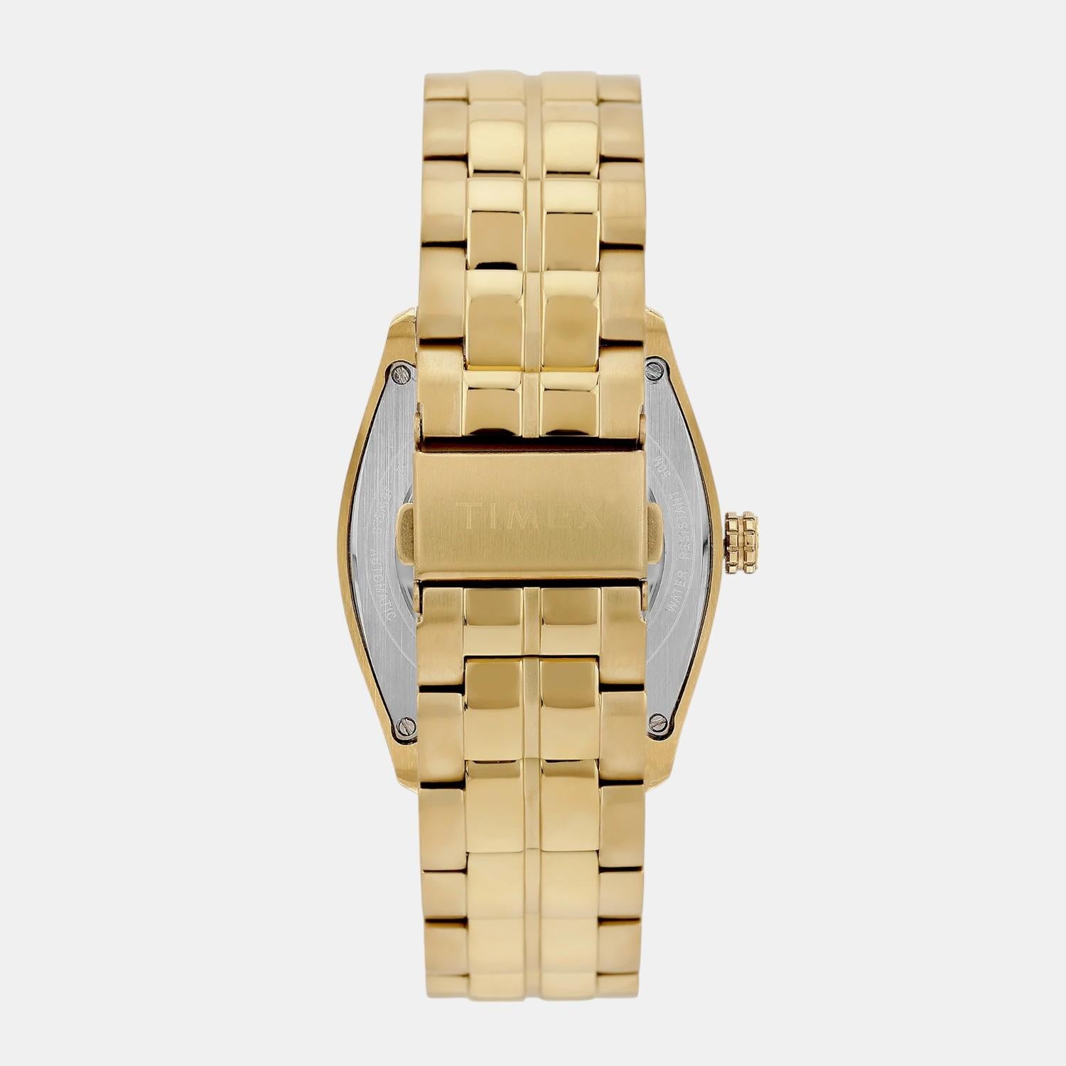Crafted by Timex, this elegant timepiece from the Fashion collection exemplifies refined design. It is tailored for Men, featuring a Rectangular case shape for timeless appeal. The Stainless Steel strap adds strength and sophistication. With a dial size of 38.4 mm, it balances subtlety and presence on the wrist. The strap width of 22 mm complements its sleek profile. The 15 mm case thickness ensures a lightweight feel. A Green dial and Gold strap create a distinct contrast. The Foldover Clasp buckle secures comfort. Driven by Automatic movement, it delivers precision through Analog display. Protected by Mineral Glass and Stainless Steel dial material. It offers 5 ATM water resistance.
