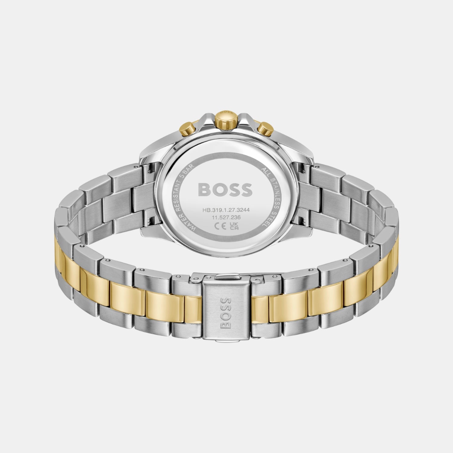 Crafted by Boss, this elegant timepiece from the Alley collection exemplifies refined design. It is tailored for Women, featuring a Round case shape for timeless appeal. The Stainless Steel strap adds strength and sophistication. A Green dial and Two Tone strap create a distinct contrast. The Push-Button Deployment buckle secures comfort. Driven by Quartz movement, it delivers precision through Chronograph display. Protected by Mineral Glass and Stainless Steel dial material. It offers 5 ATM water resistance.