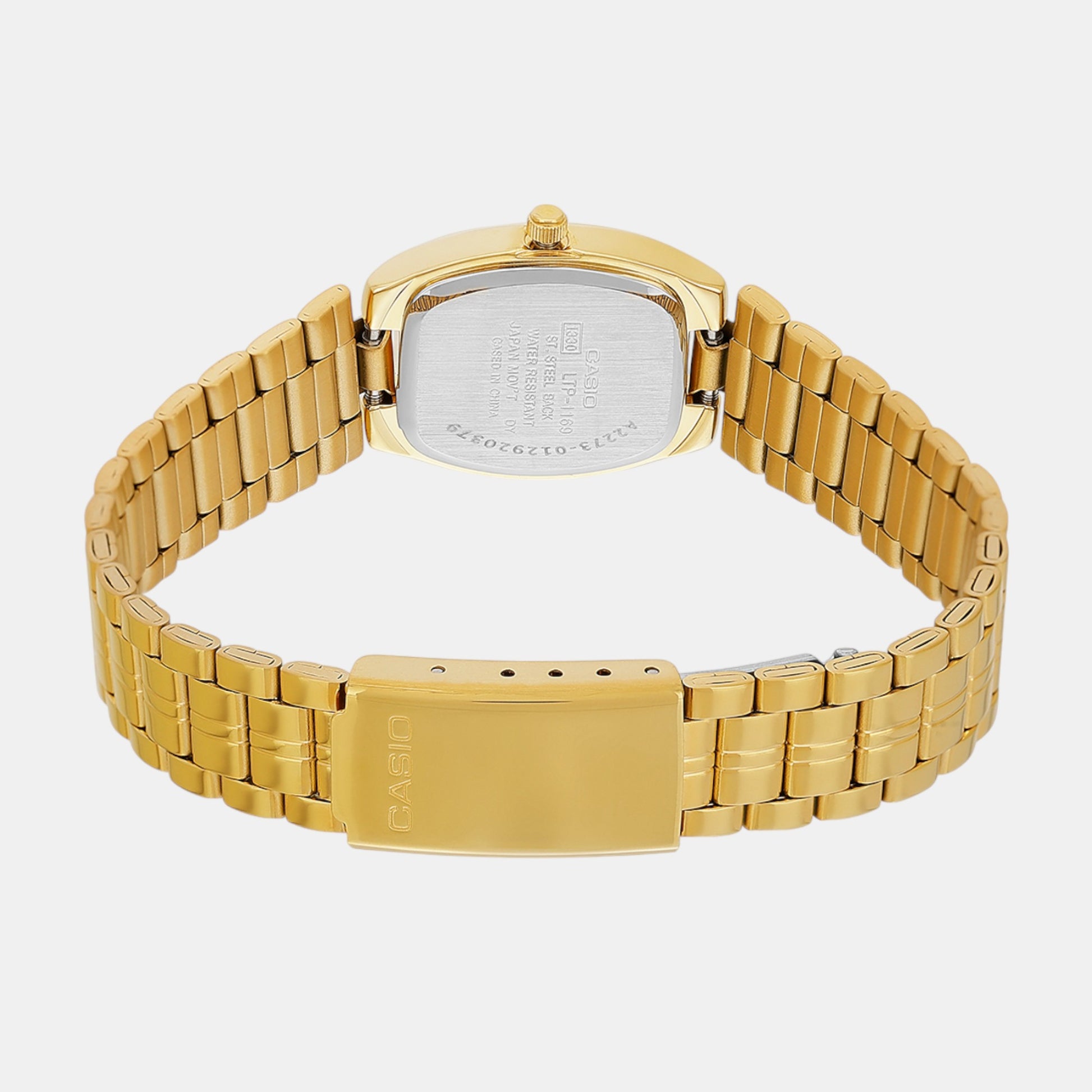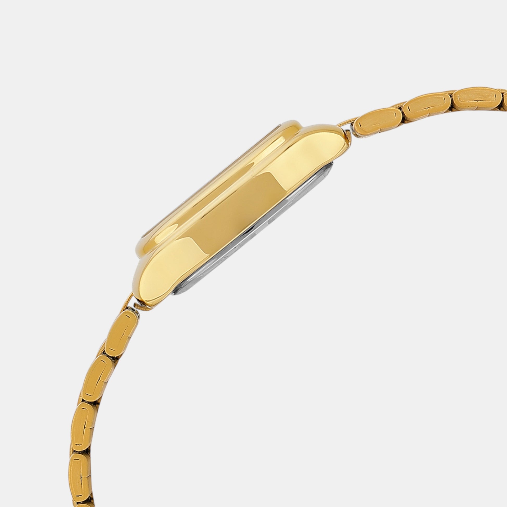 Crafted by Casio, this elegant timepiece from the Enticer collection exemplifies refined design. It is tailored for Women, featuring a Square case shape for timeless appeal. The Stainless Steel strap adds strength and sophistication. With a dial size of 30 mm, it balances subtlety and presence on the wrist. The 7.8mm case thickness ensures a lightweight feel. A Silver dial and Gold strap create a distinct contrast. The Foldover Clasp buckle secures comfort. Driven by Quartz movement, it delivers precision through Analog display. Protected by Mineral Glass and Stainless Steel dial material.