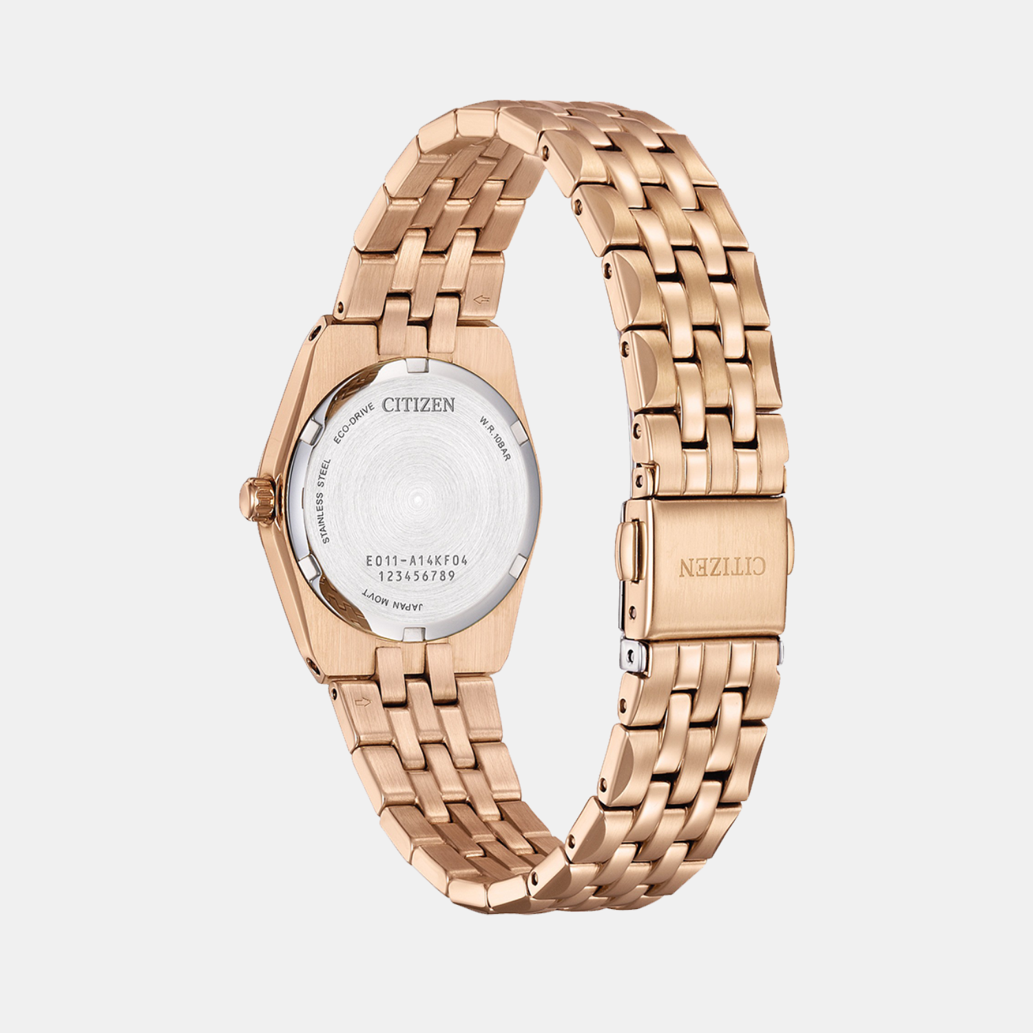 Crafted by Citizen, this elegant timepiece from the Corso collection exemplifies refined design. It is tailored for Women, featuring a Round case shape for timeless appeal. The Stainless Steel strap adds strength and sophistication. With a dial size of 27 mm, it balances subtlety and presence on the wrist. The strap width of 16mm complements its sleek profile. The 10 mm case thickness ensures a lightweight feel. A Blue dial and Rose Gold strap create a distinct contrast. The Folding Clasp buckle secures comfort. Driven by Eco-Drive movement, it delivers precision through Analog display. Protected by Mineral Glass and Stainless Steel dial material. It offers 10 ATM water resistance.