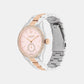The 38 mm stainless steel case houses a blush-pink dial, accented with slim indices and graceful leaf-shaped hands that bring softness to the structured form. A highlight of this timepiece is the transparent caseback, offering a glimpse of the self-winding automatic movement at work. The stainless steel bracelet sits comfortably on the wrist and secures with a push-button deployment clasp. With 3 ATM water resistance, it is well suited for everyday wear.