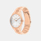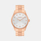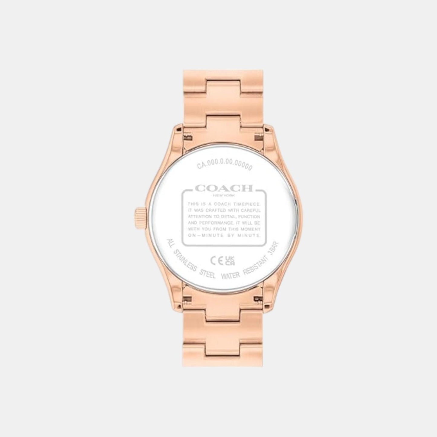 A rose gold stainless steel strap.