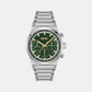 Set in a 41 mm stainless steel case, the dial showcases a matte dark green finish—subtle yet distinctive. Three chronograph subdials are arranged symmetrically, offering stopwatch capability without compromising the watch’s visual balance. Slim hands and baton indices ensure clarity, while the polished stainless steel bracelet fastens via a push-button deployment clasp for a smooth, secure fit. The 5 ATM water resistance rating adds everyday practicality.