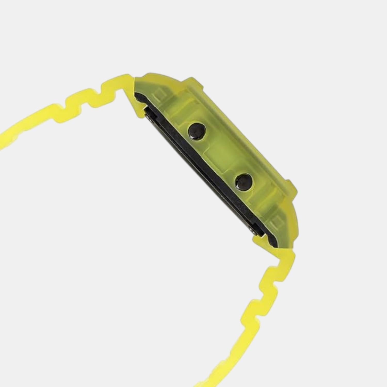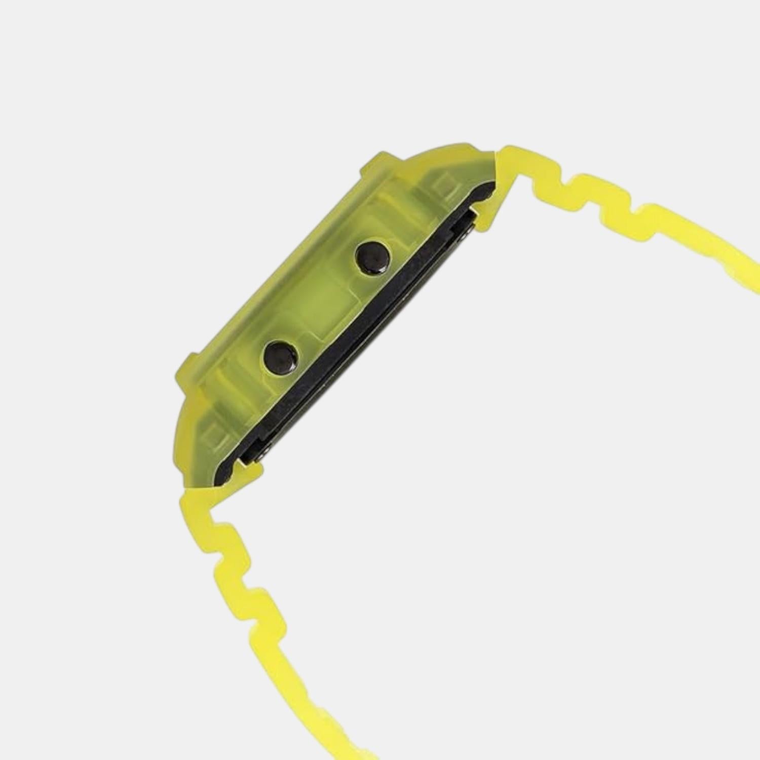 Crafted by Casio, this elegant timepiece from the G-Shock collection exemplifies refined design. It is tailored for Men, featuring a Rectangular case shape for timeless appeal. The Resin strap adds strength and sophistication. With a dial size of 43.8 mm, it balances subtlety and presence on the wrist. The 13.7 mm case thickness ensures a lightweight feel. A Black dial and Translucent Yellow and Black strap create a distinct contrast. The Tang Buckle buckle secures comfort. Driven by Quartz movement, it delivers precision through Digital display. Protected by Mineral Glass and Resin dial material. It offers 20 ATM water resistance.