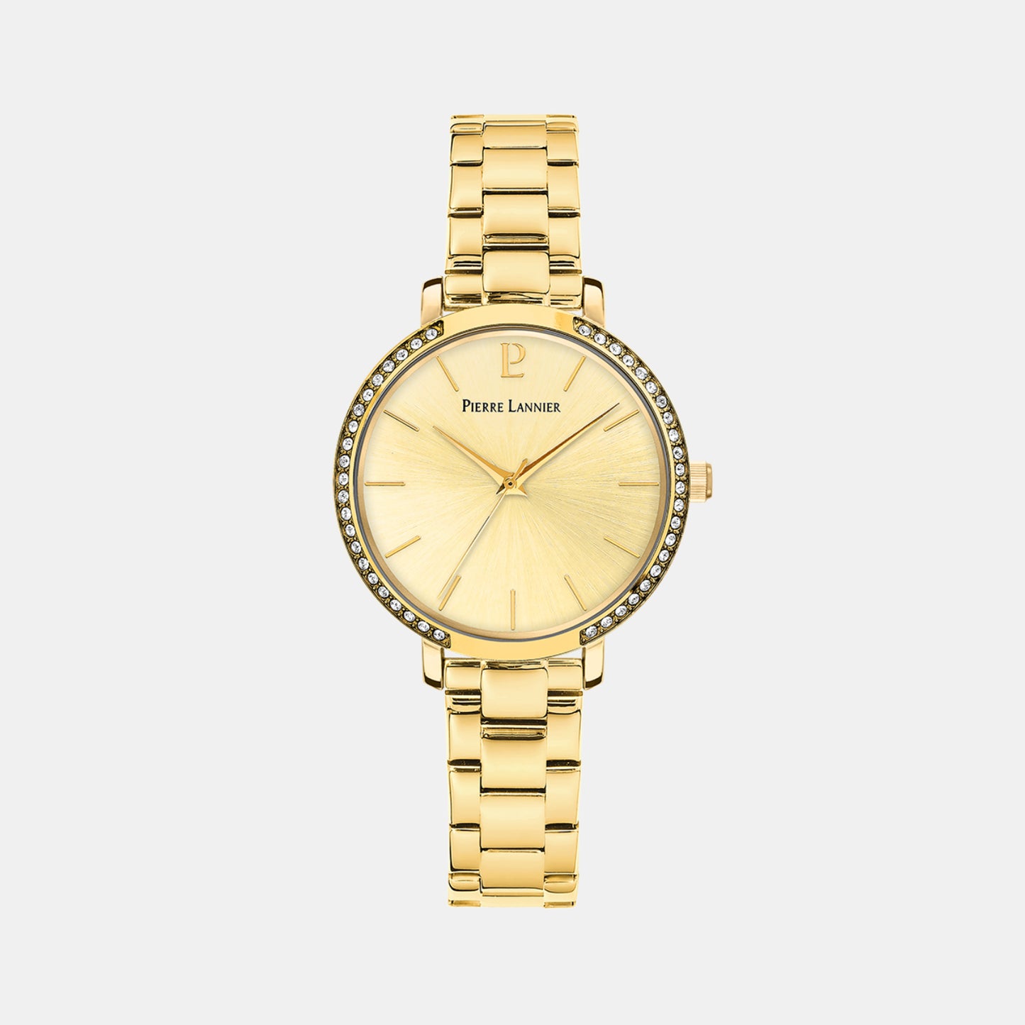 Pierre Lannier Chouquette Women Quartz Gold Dial Analog Stainless Steel Watch 037H542-1