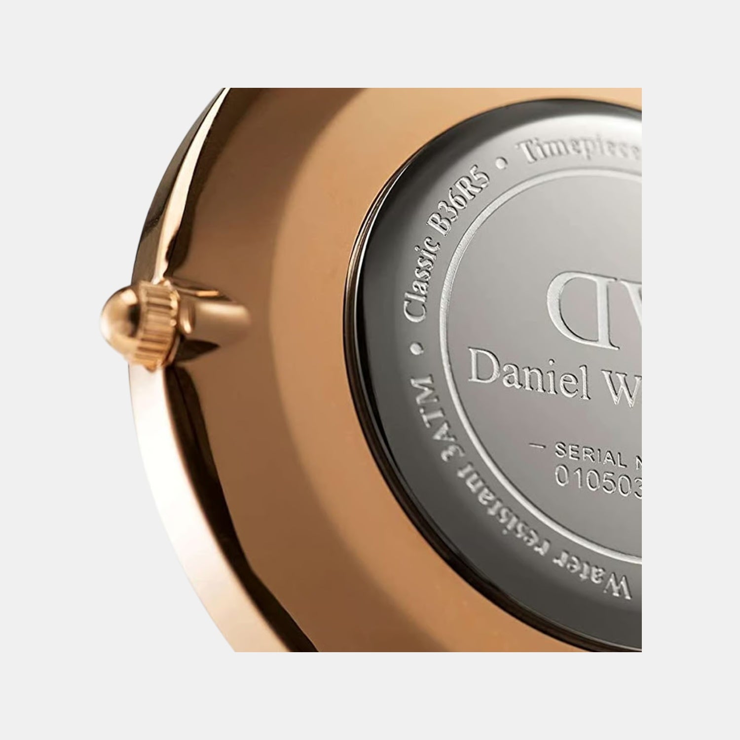 Rank high on the fashion meter by sporting this analog watch from Daniel Wellington's Classic St Mawes collection. Protected by mineral glass, the round dial exhibits plain two hands and stick markers that enable time reading ease. Crafted from genuine leather, this enticing strap adds an elite touch to it. The buckle clasp ensures your wrist a secure fit. Wear this water-resistant timekeeper with a pair of trousers and a formal shirt of your choice to create an elegant and effortlessly aesthetic ensemble.