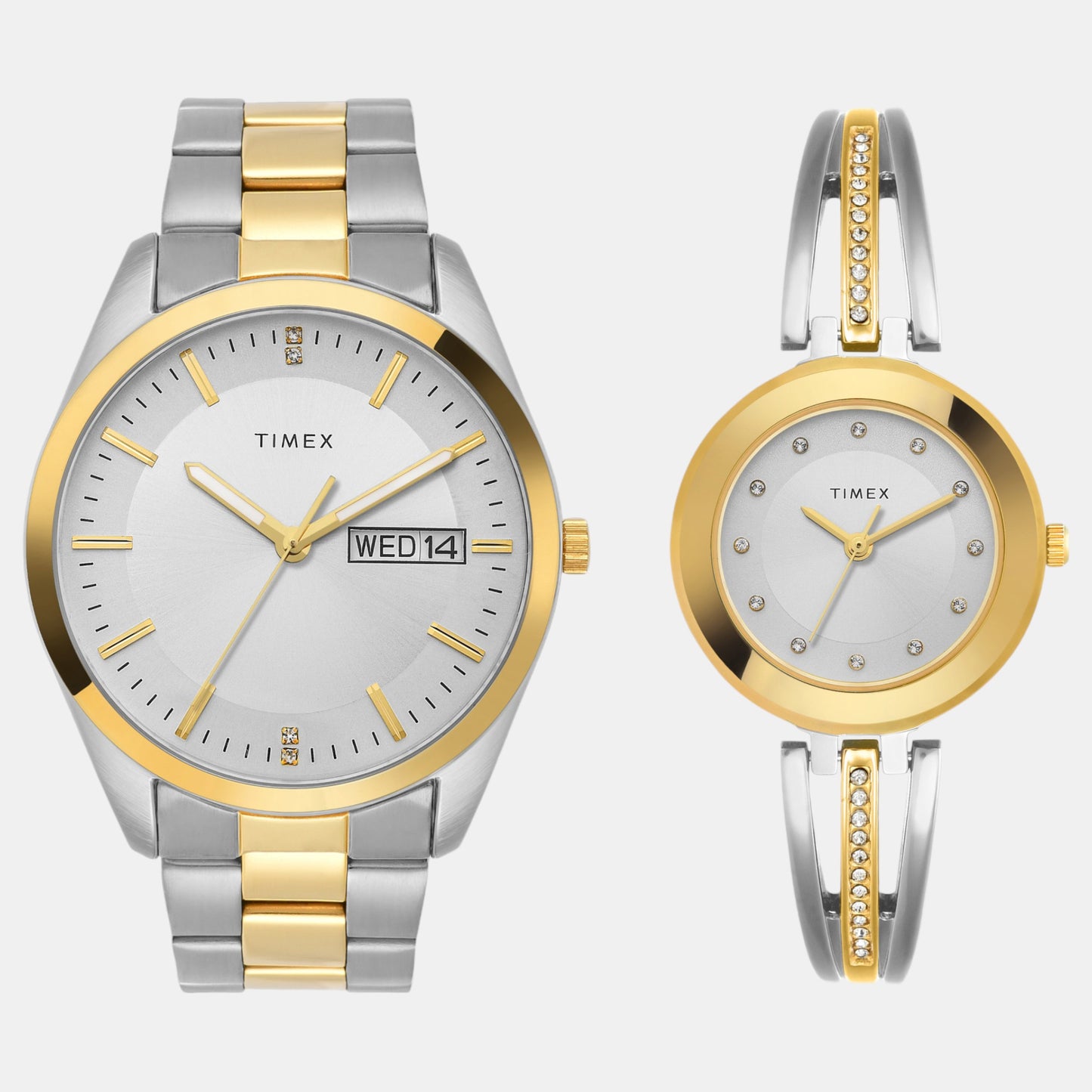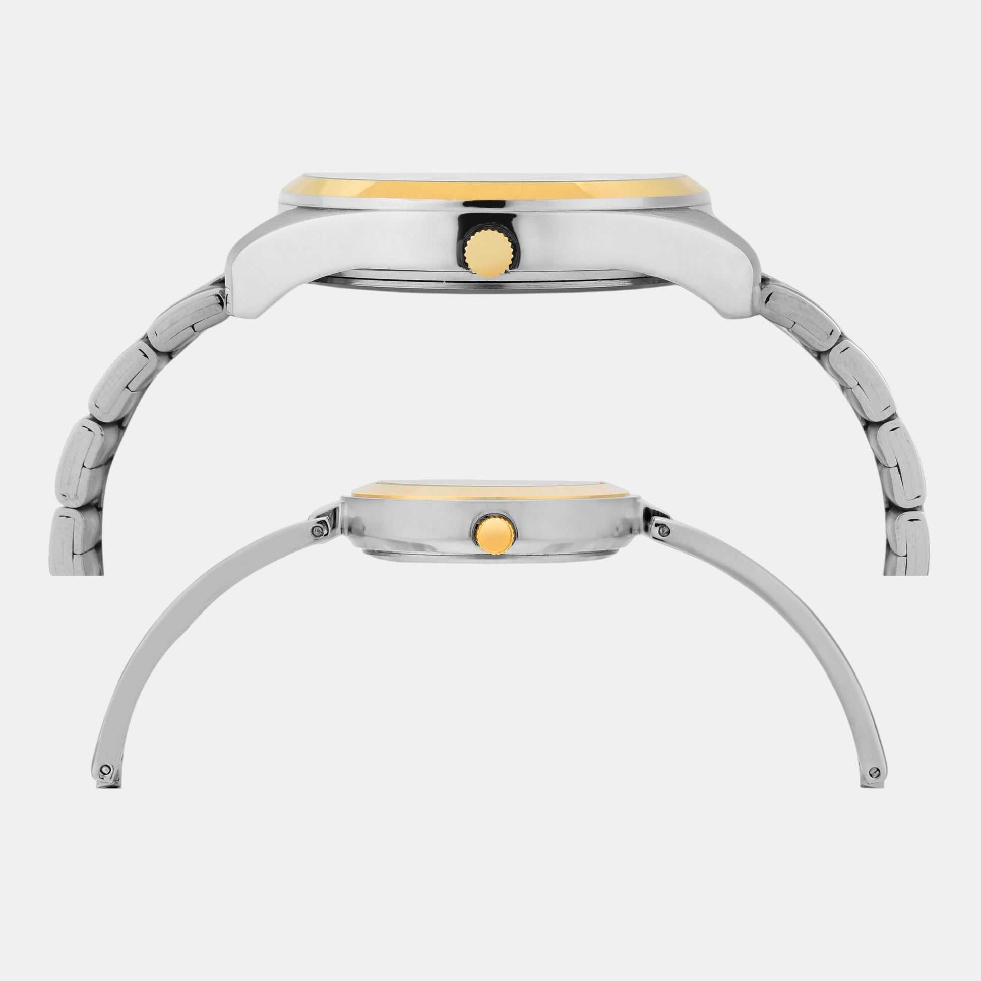Fashion Couple Quartz Silver Dial Analog Stainless Steel Watch TW00PR308