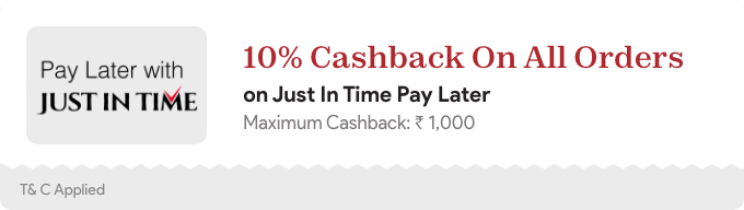 Upto Rs. 200 Off on Prepaid Orders. | TnC Apply.10% cashback up to ₹1000. Select Just In Time Pay Later at the checkout | Offer Applicable only on First purchase | TnC Apply.