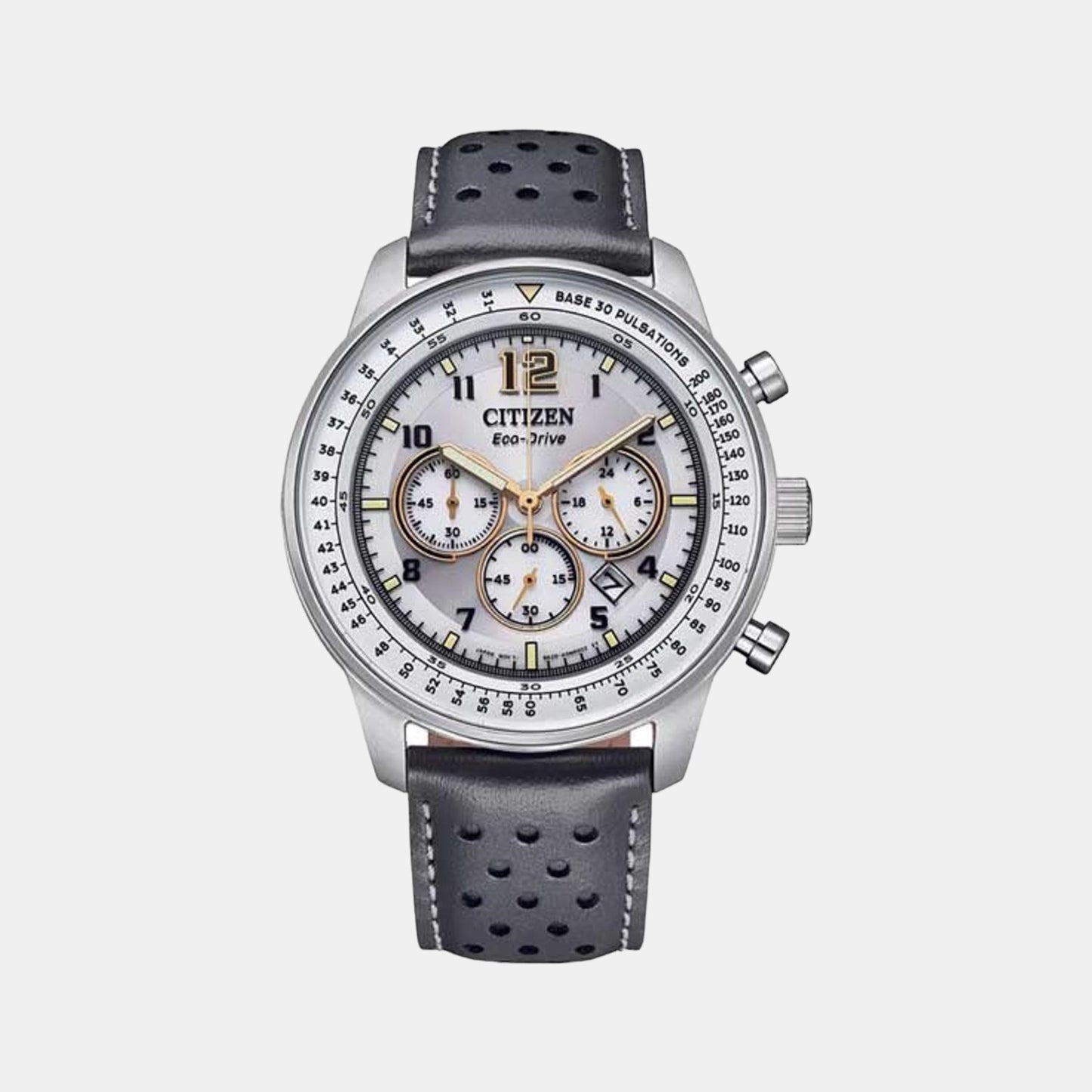 Eco-Drive Men Quartz Grey Dial Chronograph Leather Watch CA4500-24H