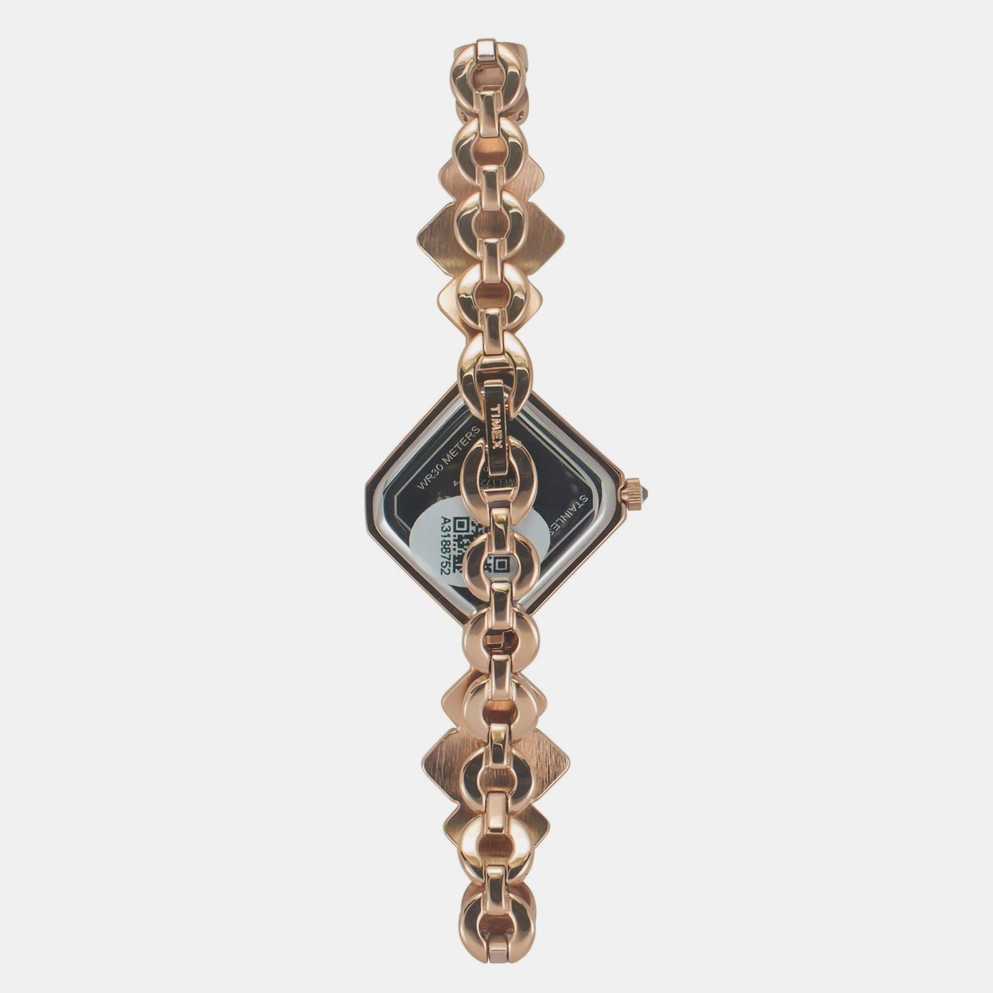 For an elegant touch, this women's analog stainless steel watch offers a 28mm rhombus-shaped case with a mother of pearl dial. The quartz movement guarantees accurate timekeeping, and the 13mm rose gold brass strap adds style while securing with a tang buckle. With 3 ATM water resistance, it's suitable for casual occasions. This watch weighs 60 grams and has a case thickness of 9mm. Backed by a 2-year warranty, it is proudly made in India.