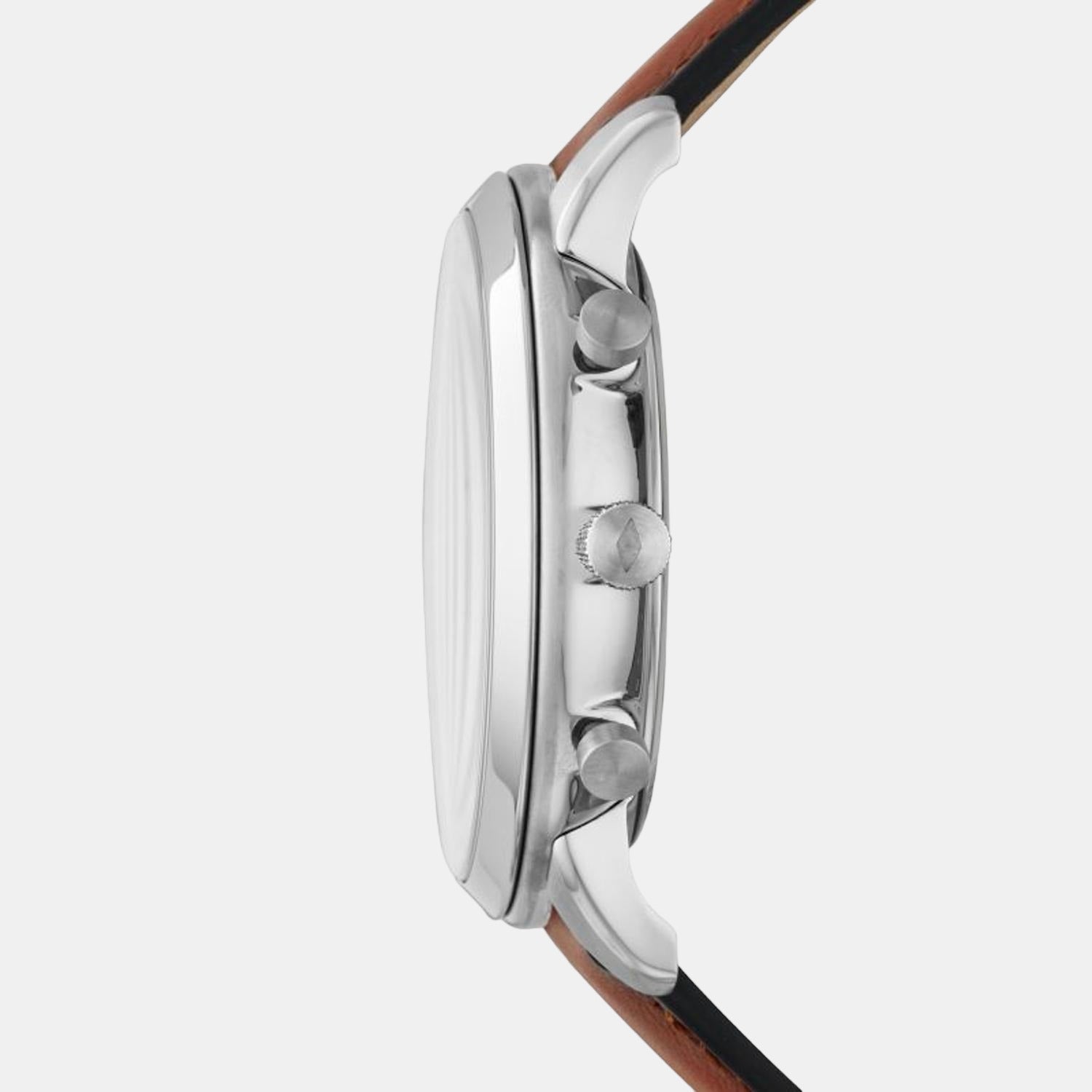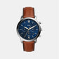 The 44mm stainless-steel case surrounds the vibrant blue dial, which also features slender gold-toned hour baton markers and luminous hands. Thereƒ??s also a date window between 4 and 5 oƒ??clock, while the brown leather strap adds comfort and a luxurious touch. The Gents Fossil Neutra Chrono Watch is a classically styled timepiece with modern flair.