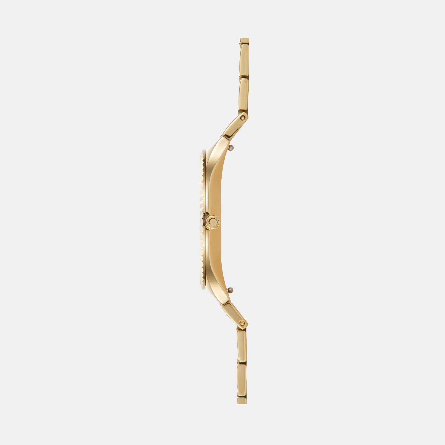 A gold stainless steel strap.