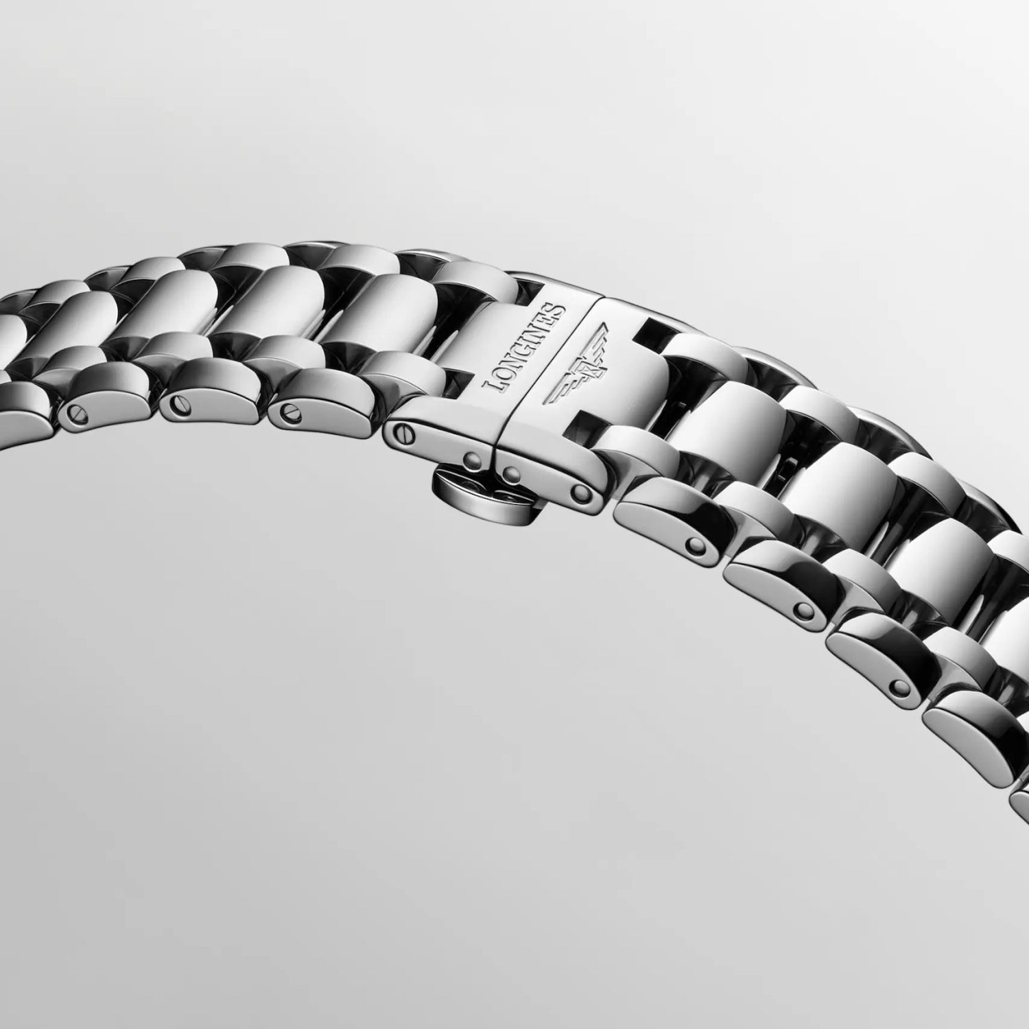 Crafted by Longines, this elegant timepiece from the Primaluna collection exemplifies refined design. It is tailored for Women, featuring a Round case shape for timeless appeal. The Stainless Steel strap adds strength and sophistication. With a dial size of 34 mm, it balances subtlety and presence on the wrist. The strap width of 8 mm complements its sleek profile. The 11.60 mm case thickness ensures a lightweight feel. A Opaline Ivory dial and Grey strap create a distinct contrast. The Folding Clasp buckle secures comfort. Driven by Automatic movement, it delivers precision through Analog display. Protected by Sapphire Glass and Stainless Steel dial material. It offers 3 ATM water resistance.