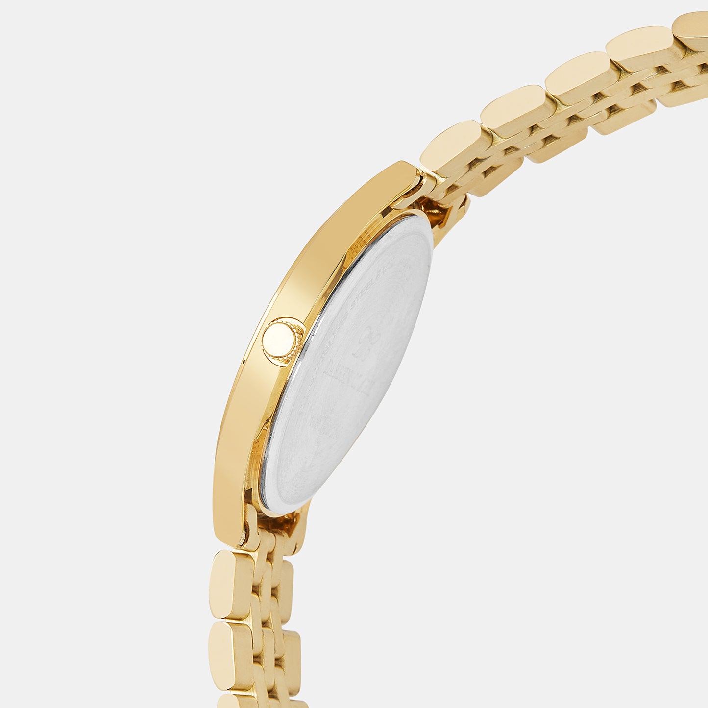 A gold stainless steel strap.