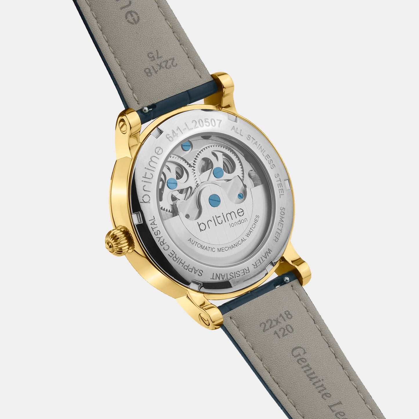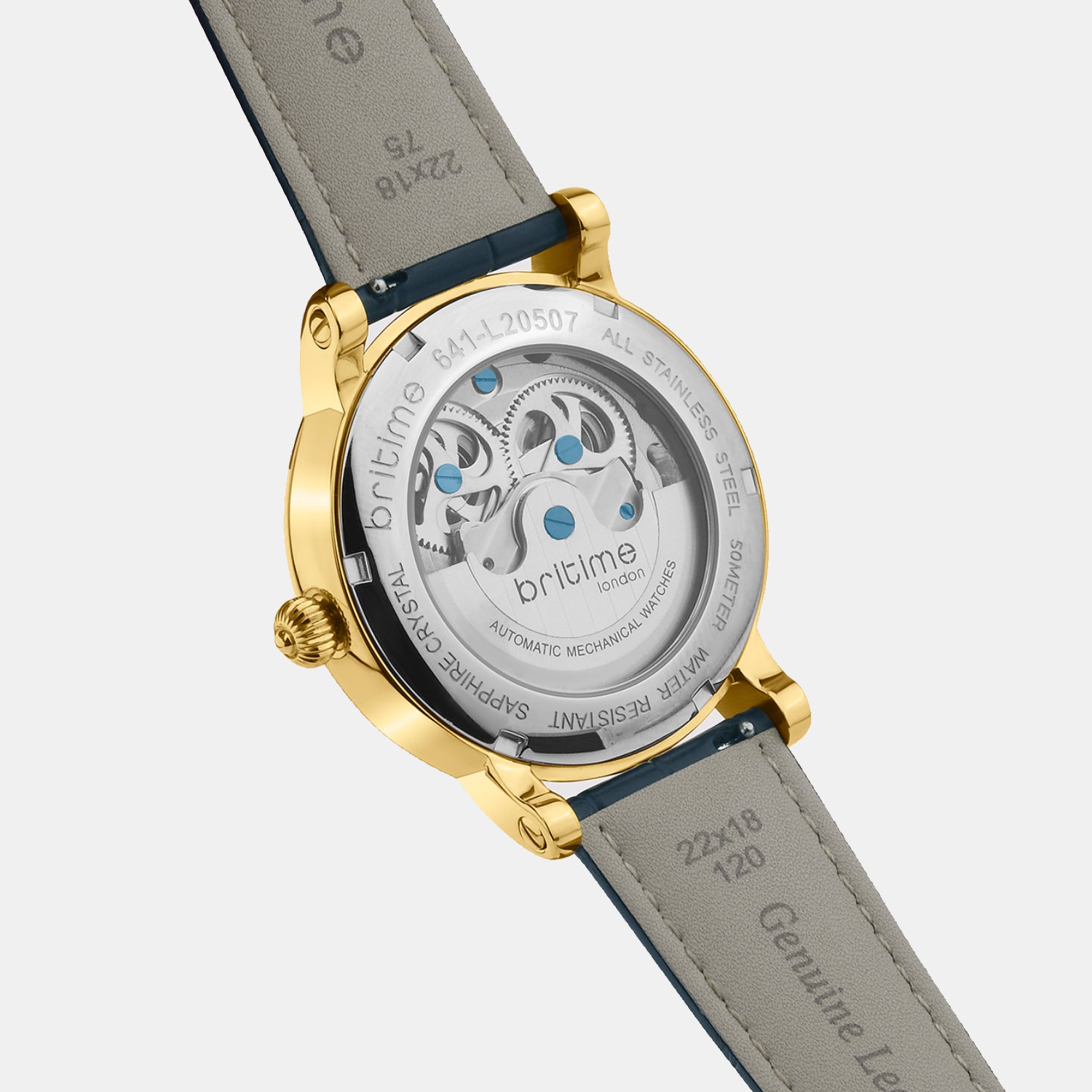 Men Automatic Blue Dial Analog Leather Watch 641-L20507