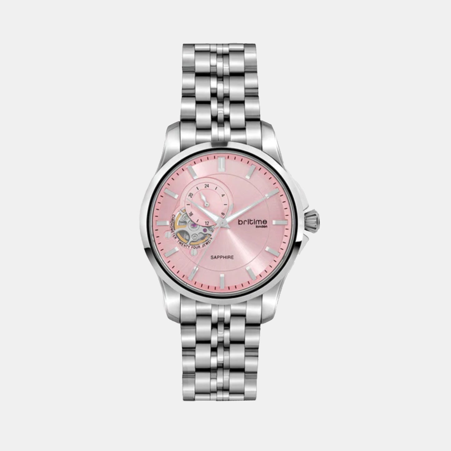 Men Automatic Pink Dial Analog Metal Watch 166-M11001