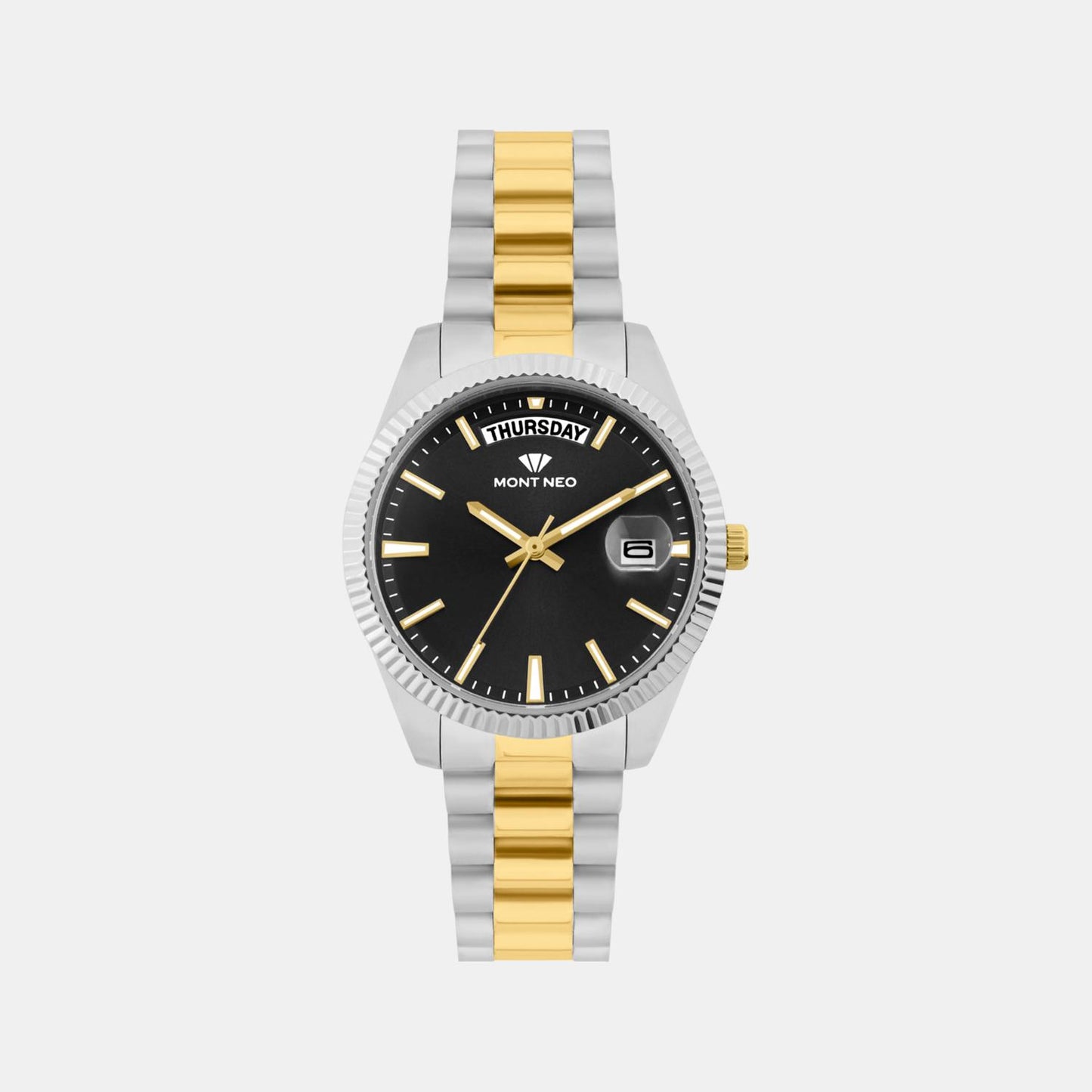 A two tone stainless steel strap.
