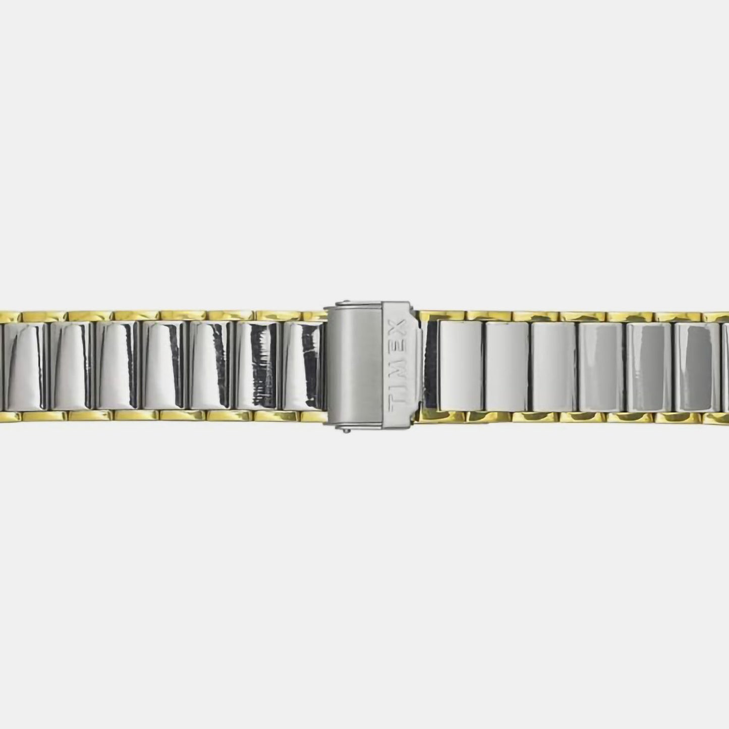 Discover Timex watch for men, featuring a blue dial, a two tone strap made of stainless steel in a round case. Built with mineral glass and brass body to balance clarity and durability. Dimensions include 39 mm dial size, 20 mm strap width, 13 mm profile for comfortable wear. Key features: quartz movement, analog display, 3 atm water resistance. A secure folding clasp ensures a dependable fit.