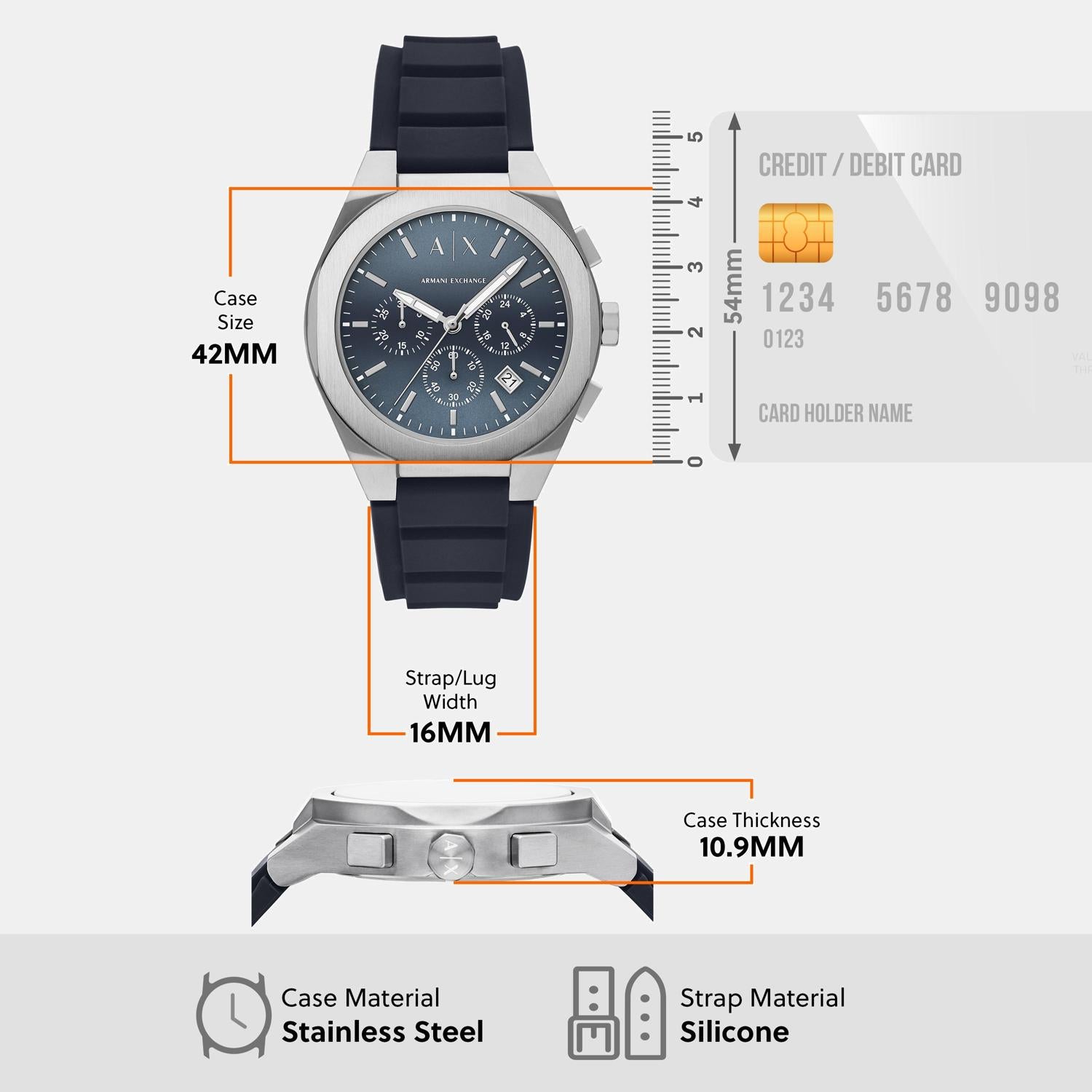 The AX AX4185 is designed for a secure fit. With a 42 mm case and a secure pin buckle, this men's watch offers a comfortable wearing experience for most wrist sizes.