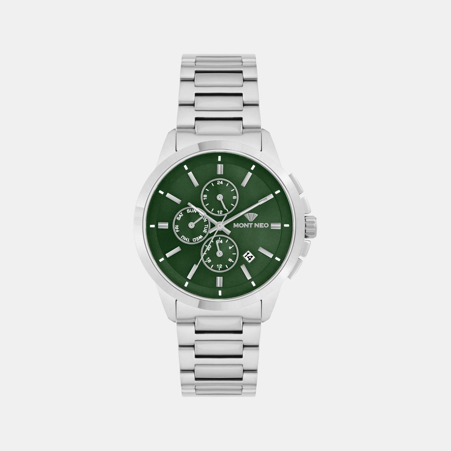 Men Quartz Green Dial Multi-Function Stainless Steel Watch G1051M-M1114