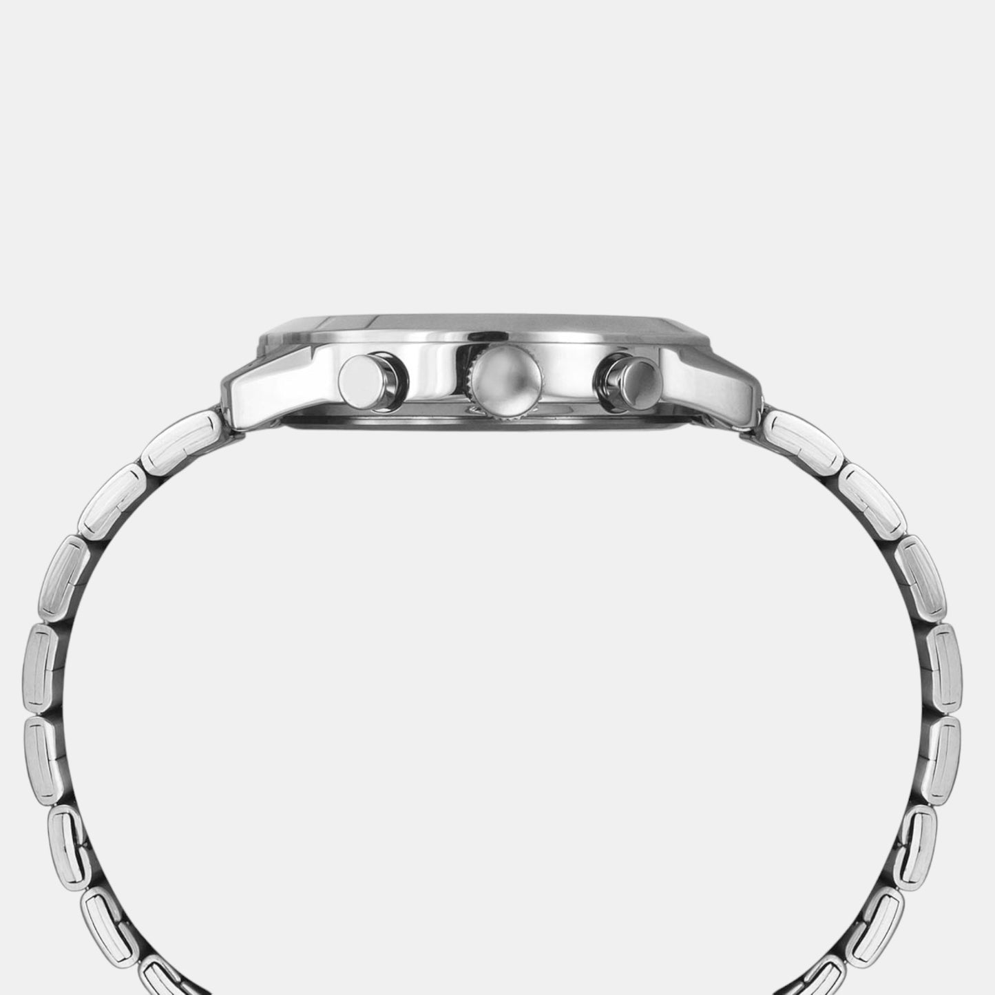 A silver stainless steel strap.
