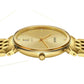 The harmonious design of the Rado Florence calls to mind the elegant domes and towers of the city from which the collection takes its name. Powered by a reliable three-hand Quartz Rado calibre R079 movement, this watch ensures greater accuracy and resistance to shocks. The 30 mm watch has an edge-to-edge-bevelled, curved sapphire crystal. The watch boasts a polished stainless steel case, crown, bezel and case back. The bracelet made of polished stainless steel with rose gold coloured alternate middle links completes the overall appearance of this classic timepiece. The champagne dial with rose gold glitter decoration, emphasised with the grey printed “Rado” logo, matches perfectly with the rose gold coloured hands. The watch is water resistant down to 50 m and is also available in L size, which makes it an ideal couples’ watch.