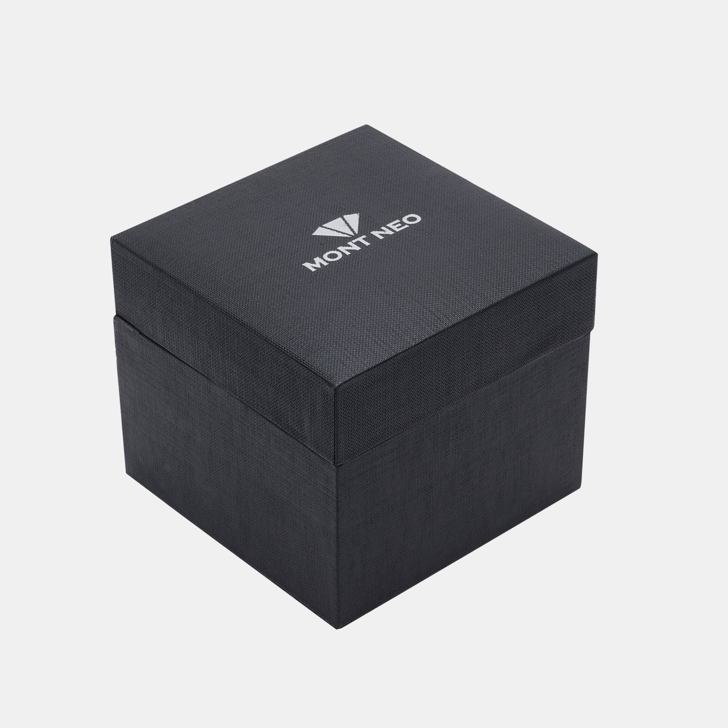 Discover Mont Neo watch for men, featuring a blue dial, a blue strap made of leather in a round case. Built with mineral glass and stainless steel body to balance clarity and durability. Dimensions include 36 mm dial size, 20 mm strap width, 9 mm profile for comfortable wear. Key features: quartz movement, analog display, 3 atm water resistance. A secure pin buckle ensures a dependable fit.