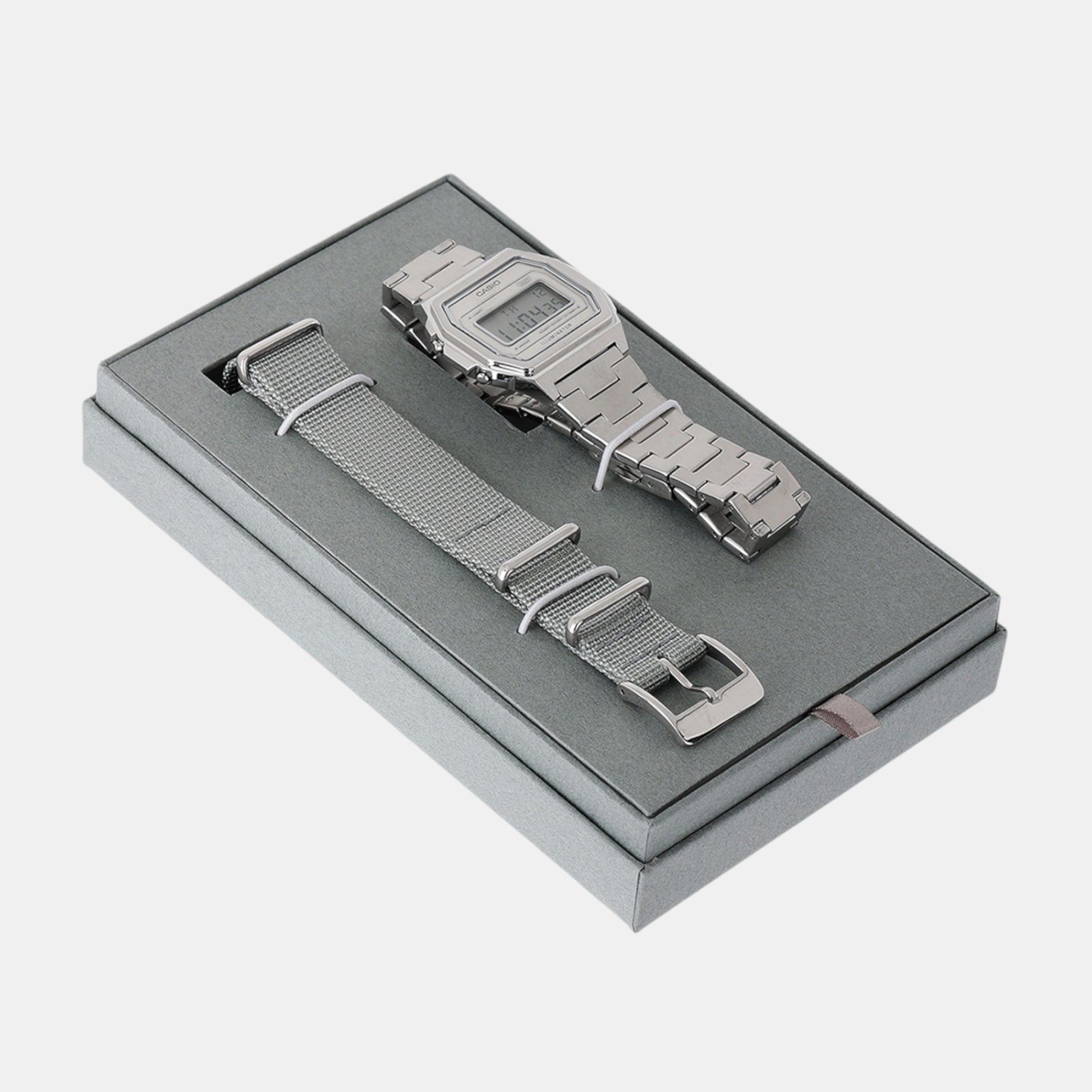 This set of multi-functional watches adopts an all-metal case and comes with interchangeable metal and cloth straps, all in monochrome simple silver tones, suitable for various occasions and enhance your personal style. The solid metal strap adopts a bold and straightforward hairline finish, which presents a perfect fashion match with the dial also using hairline finish. Can be mixed and matched with the gray fabric strap to create different styles to suit different occasions. High-brightness LED backlight, computer, alarm and other convenient features make life easier. The special watch box packaging makes this set of watches an unforgettable gift.