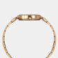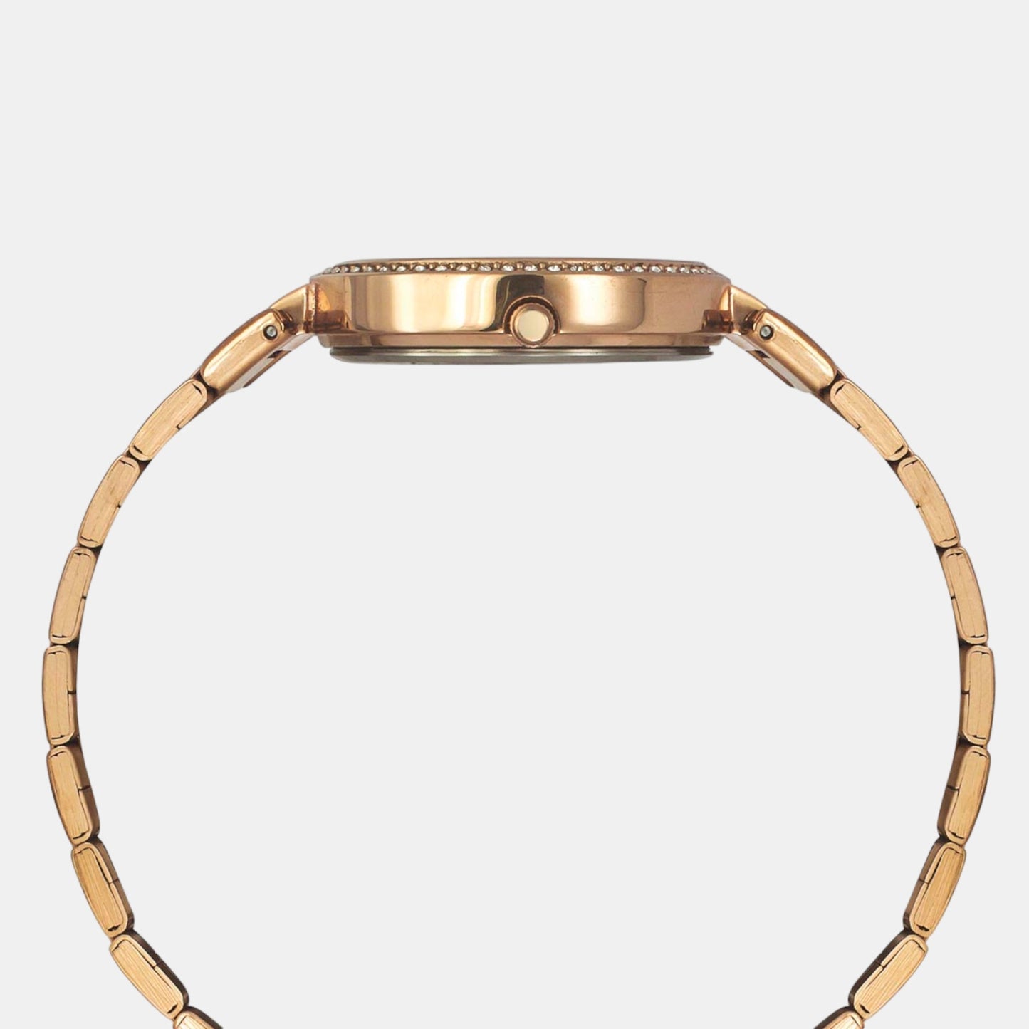 A rose gold stainless steel strap.
